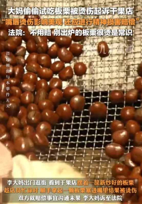 (信息来源:环球网——2024-12-12《顺手“试吃”个栗子,大妈被烫伤,还把商家给告了……》)