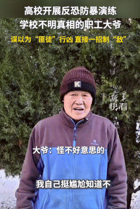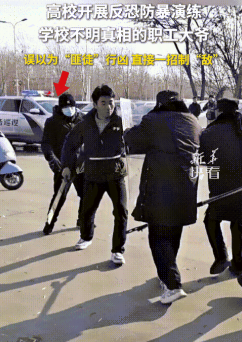 笑死我了!学生参加学校举办的防爆演练,手持“砍刀”扮演歹徒!不料,一不明真相的大爷看到后一把将学生摔倒!大爷随后的一个举动,让大伙顿时看懵了!网友:大爷好样的,身手不凡。