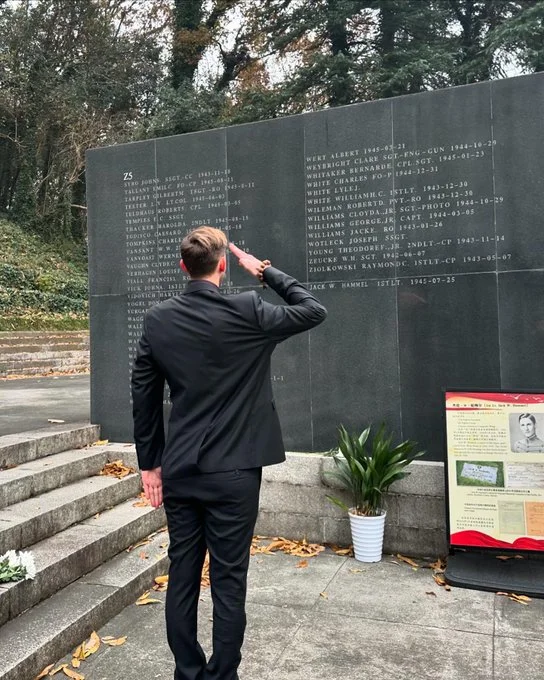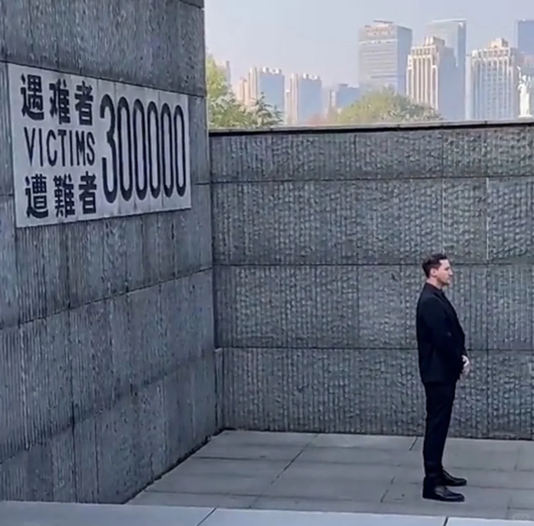 从其社交媒体上,我们能看到他在南京的行程:侵华日军南京大屠杀遇难同胞纪念馆、燕子矶公园(南京大屠杀遇难者丛葬地之一)和南京抗日航空烈士纪念馆。