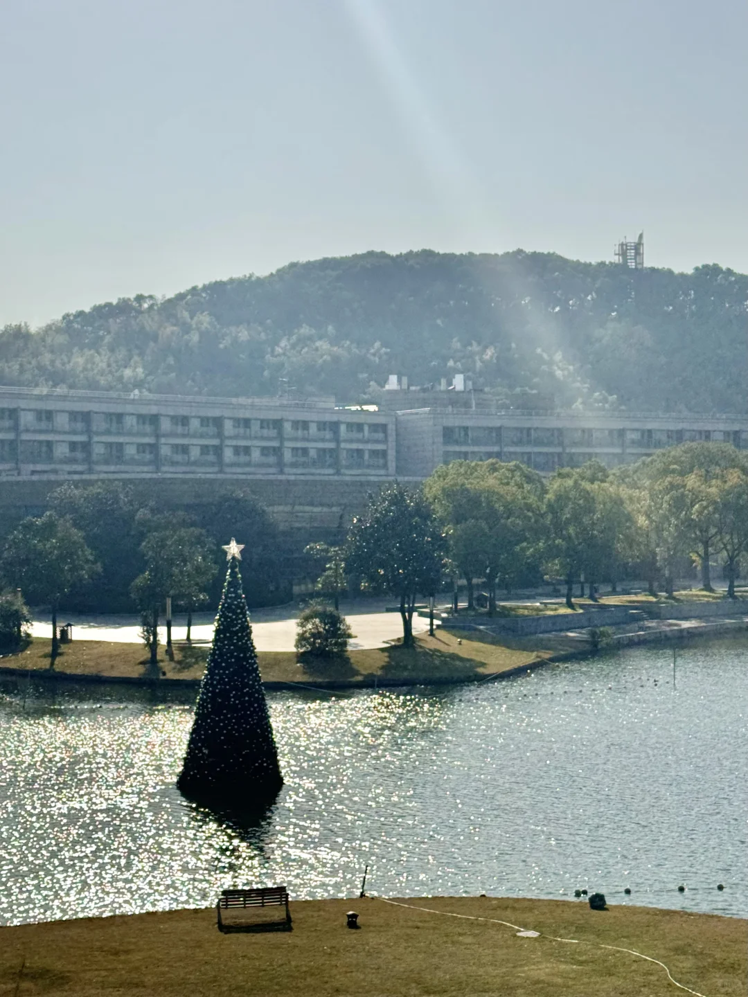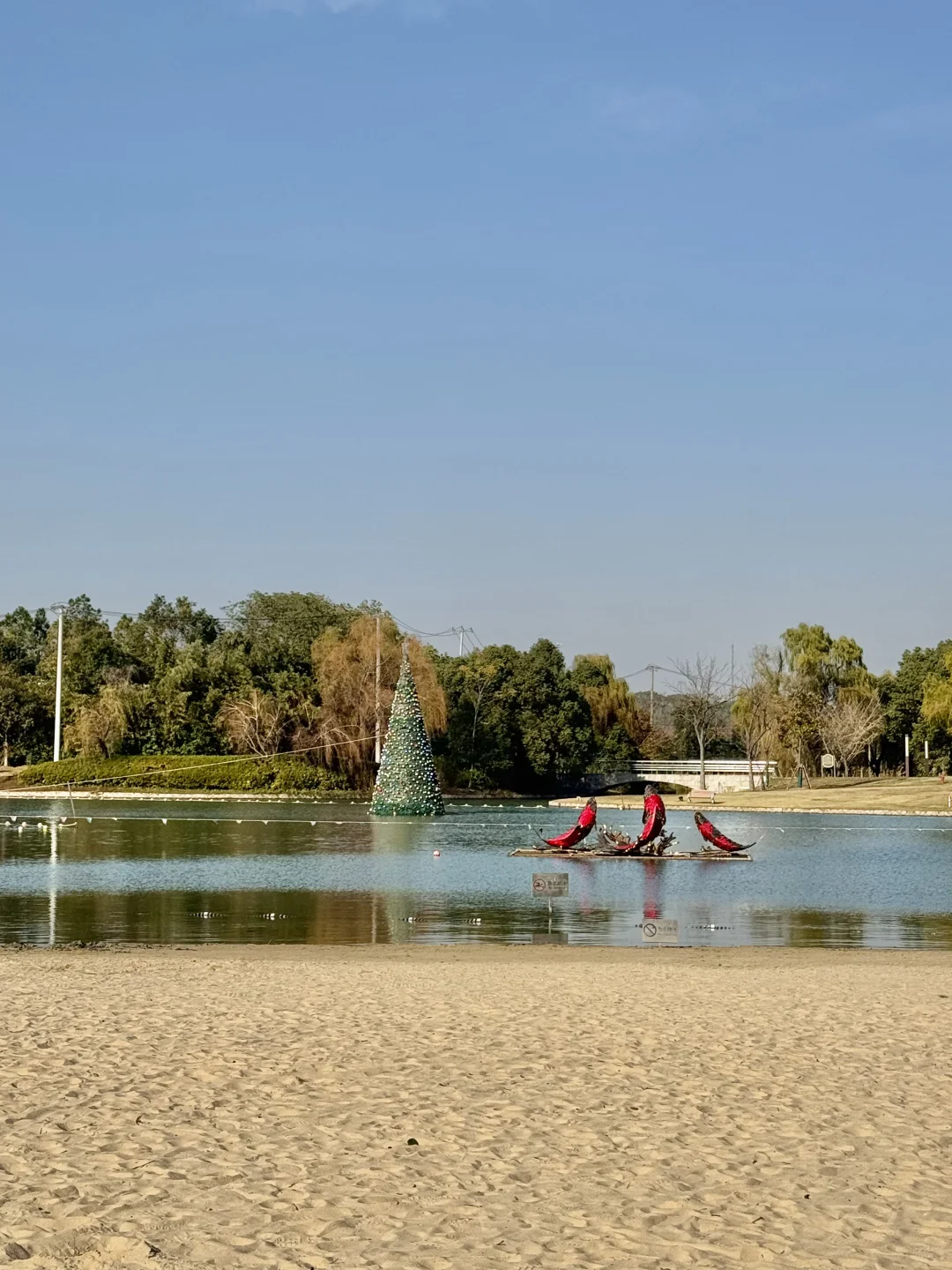 🏖️在户外沙滩边上已经能看到装饰好的圣诞树🎄