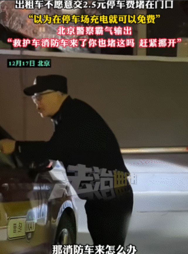 (信息来源:法治进行时;2024年12月17日关于《出租车不愿意交2.5元停车费堵在门口,“以为在停车场充电就可以免费”,北京警察霸气输出》的报道)