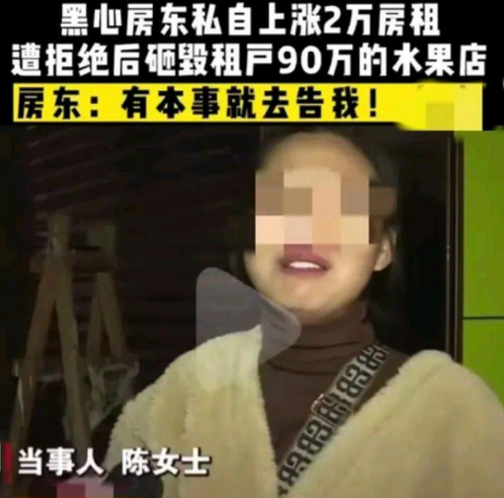 太坏了!湖南长沙,一女子为了开水果店,与房东签订了10年的商铺租赁合同。随后,女子又花费了90多万元搞装修。可是因为女子水果店生意兴隆,房东竟然出尔反尔,要求将房租从14.4万元一年涨到16.4万元一年。女子不同意。房东恼羞成怒,将女子的水果店打砸的满目狼籍,而且还让人拉走店铺里的电器和水果。女子找来记者,可房东却嚣张的说道,有本事,你们去告。