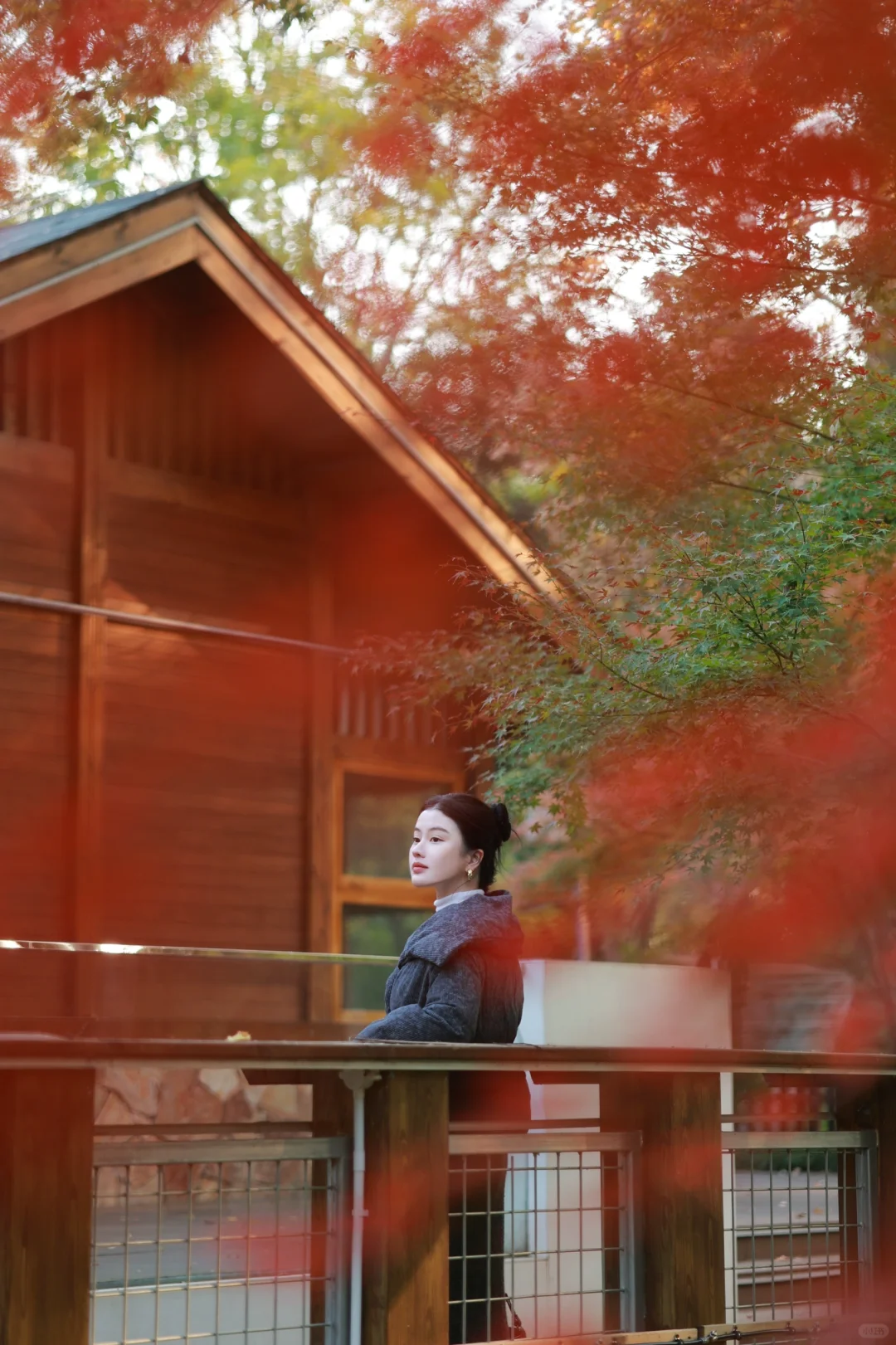 定位📍尚喜舍咖啡馆或东湖绿道的九女墩入口,就会发现被几棵如火红枫围绕的小木屋,实测冬日下午2-4点是最佳拍照时间哦。