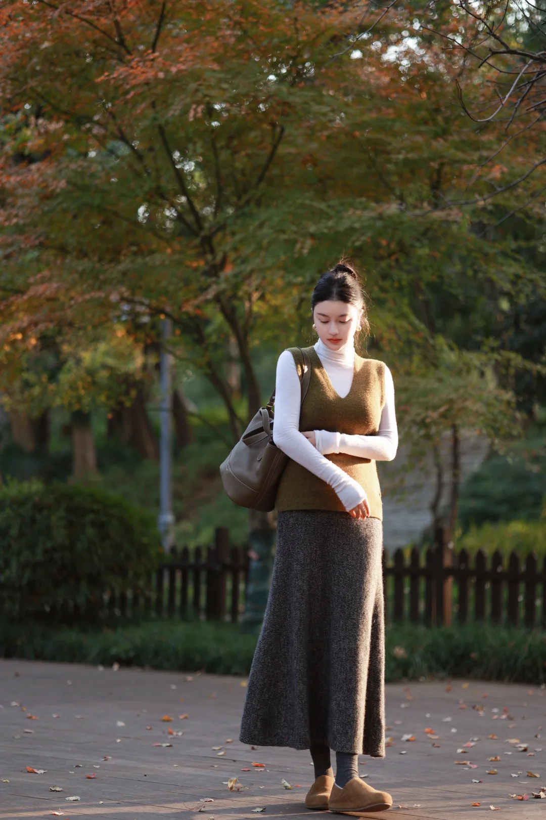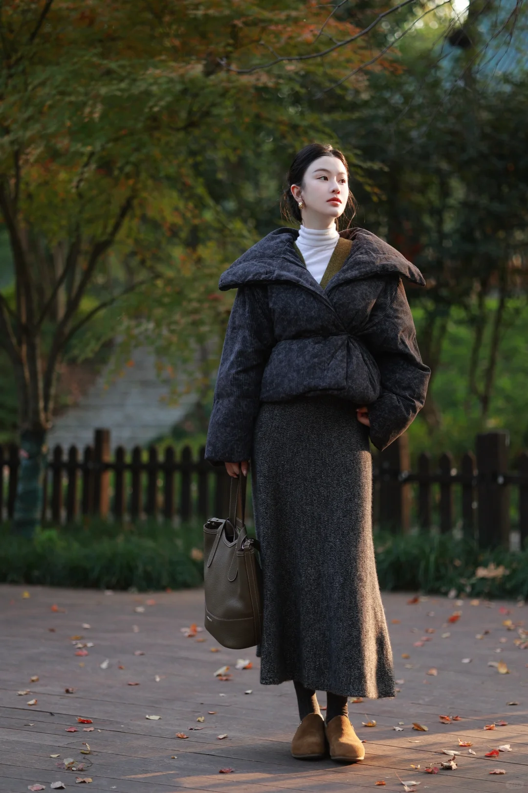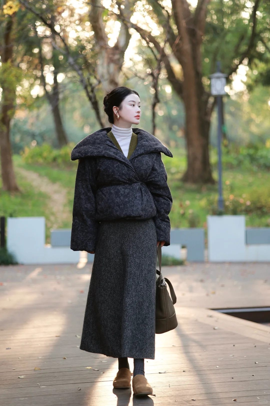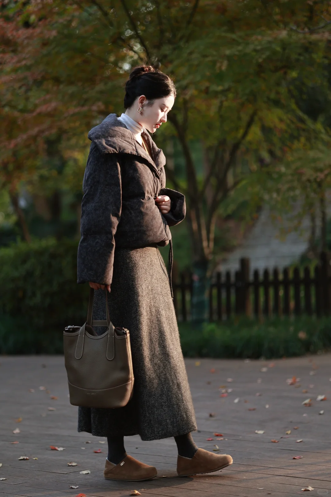 虽然今年的冬好温和,但我还是早早准备好了超厚的水墨染羽绒服,搭配苔藓绿羊毛背心与羊毛长裙,穿一双像小土豆的🥔加绒的勃肯鞋,暖暖的,就很安心。