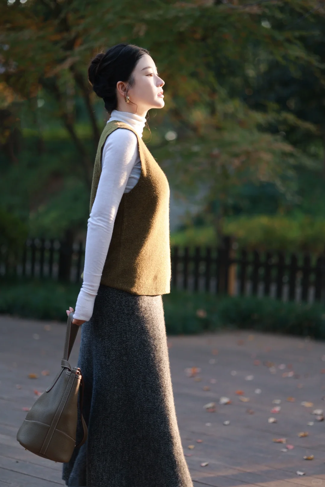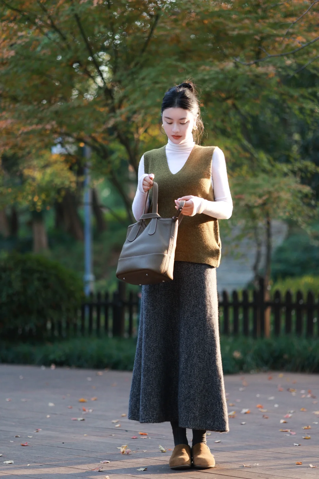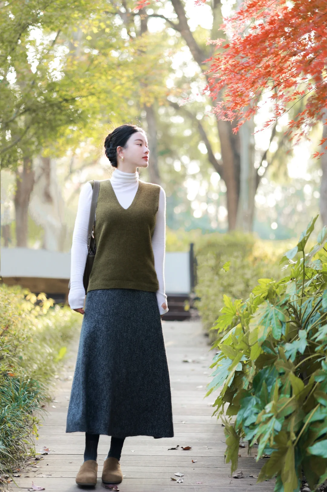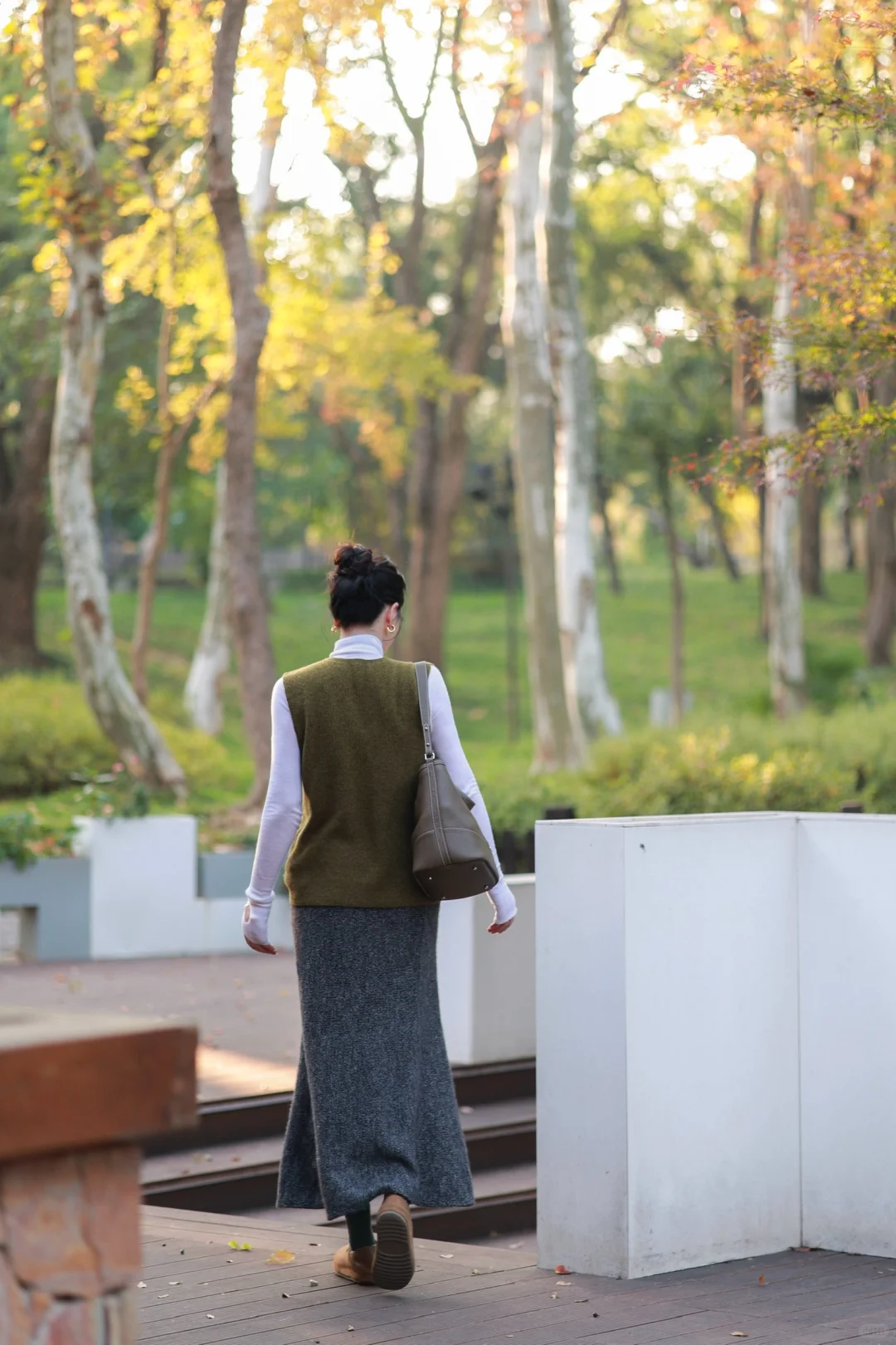 虽然今年的冬好温和,但我还是早早准备好了超厚的水墨染羽绒服,搭配苔藓绿羊毛背心与羊毛长裙,穿一双像小土豆的🥔加绒的勃肯鞋,暖暖的,就很安心。