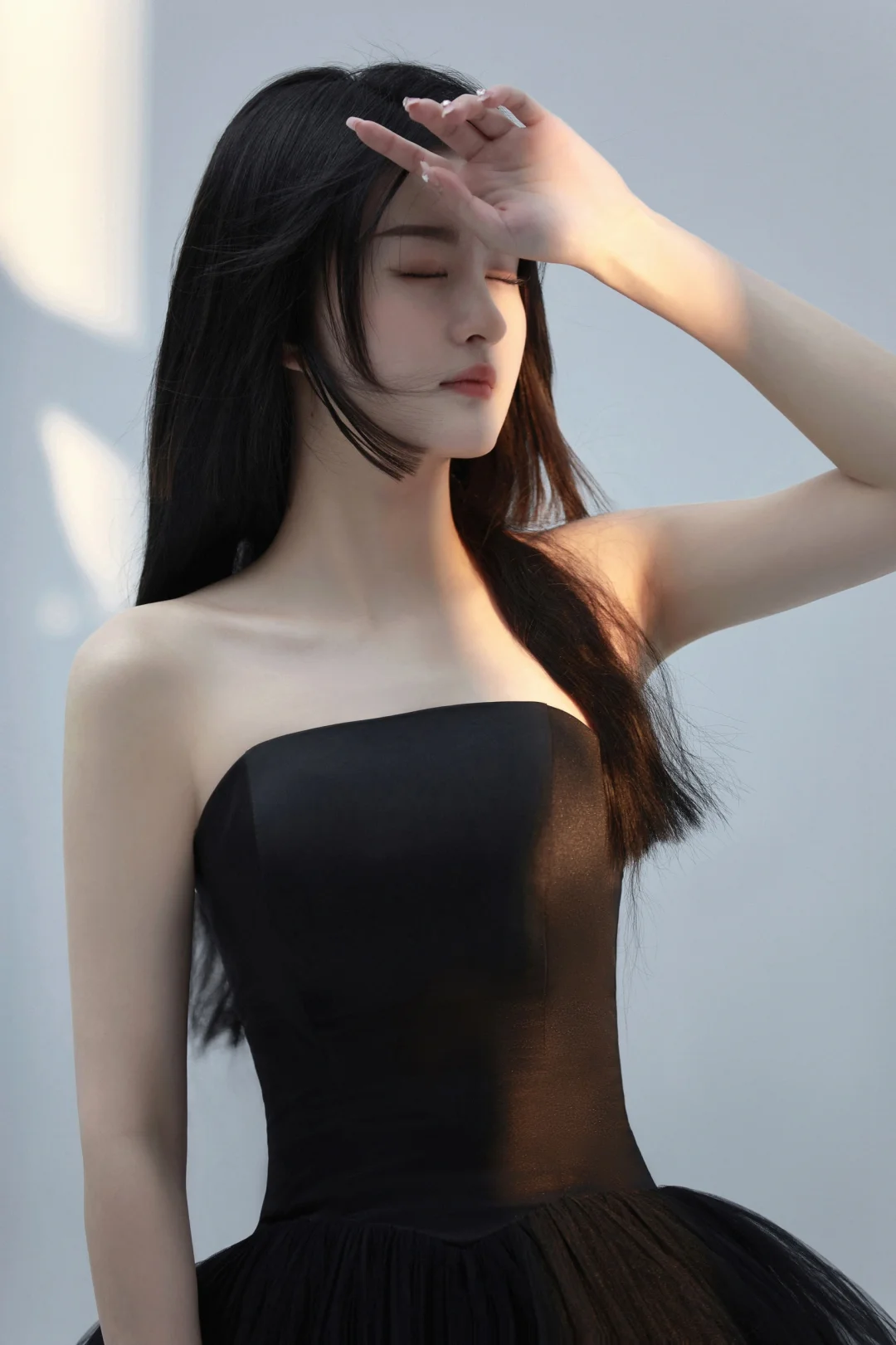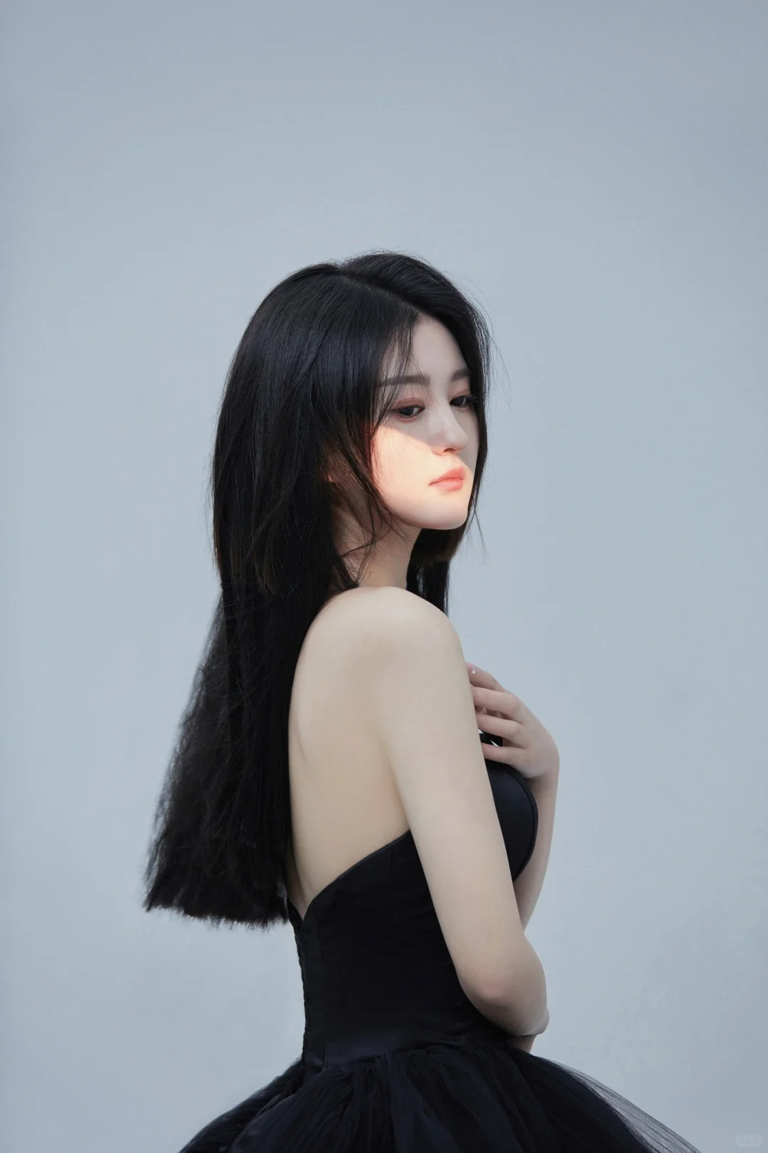 一袭优雅高贵黑色抹胸纱裙