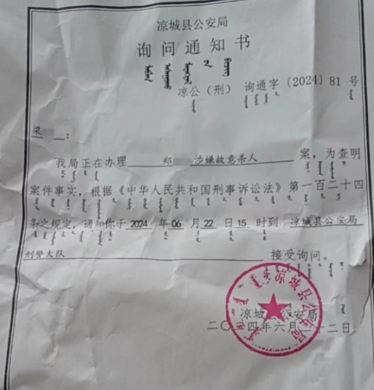 (信源:红星新闻——2024-06-24《内蒙古一女子等红灯被撞后遭二次碾压身亡,嫌疑人被刑拘 家属认为应追究副驾人员刑责》)