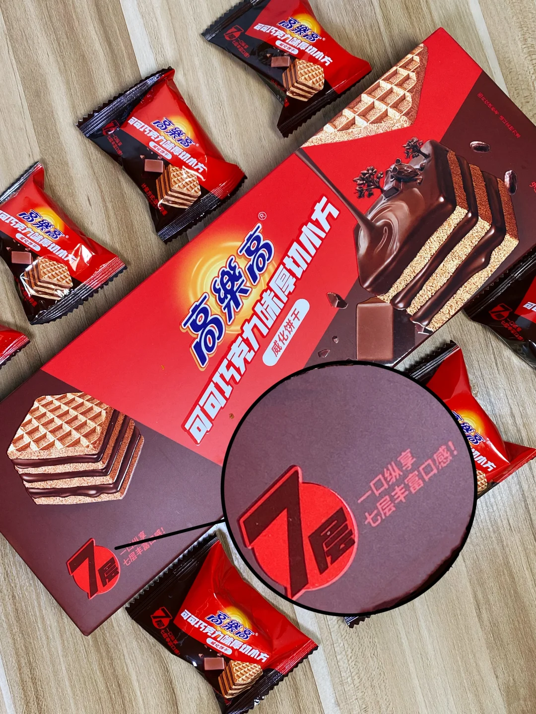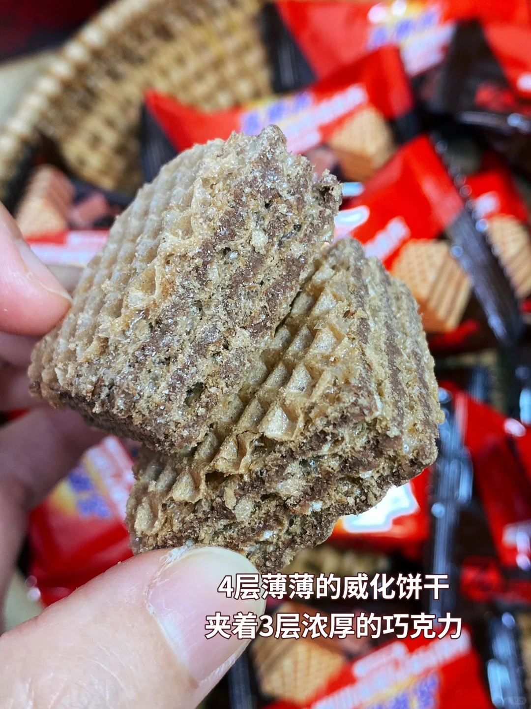 ✅四层薄薄威化薄脆夹三层巧克力酱,每一口都是满满的巧克力浓郁感。