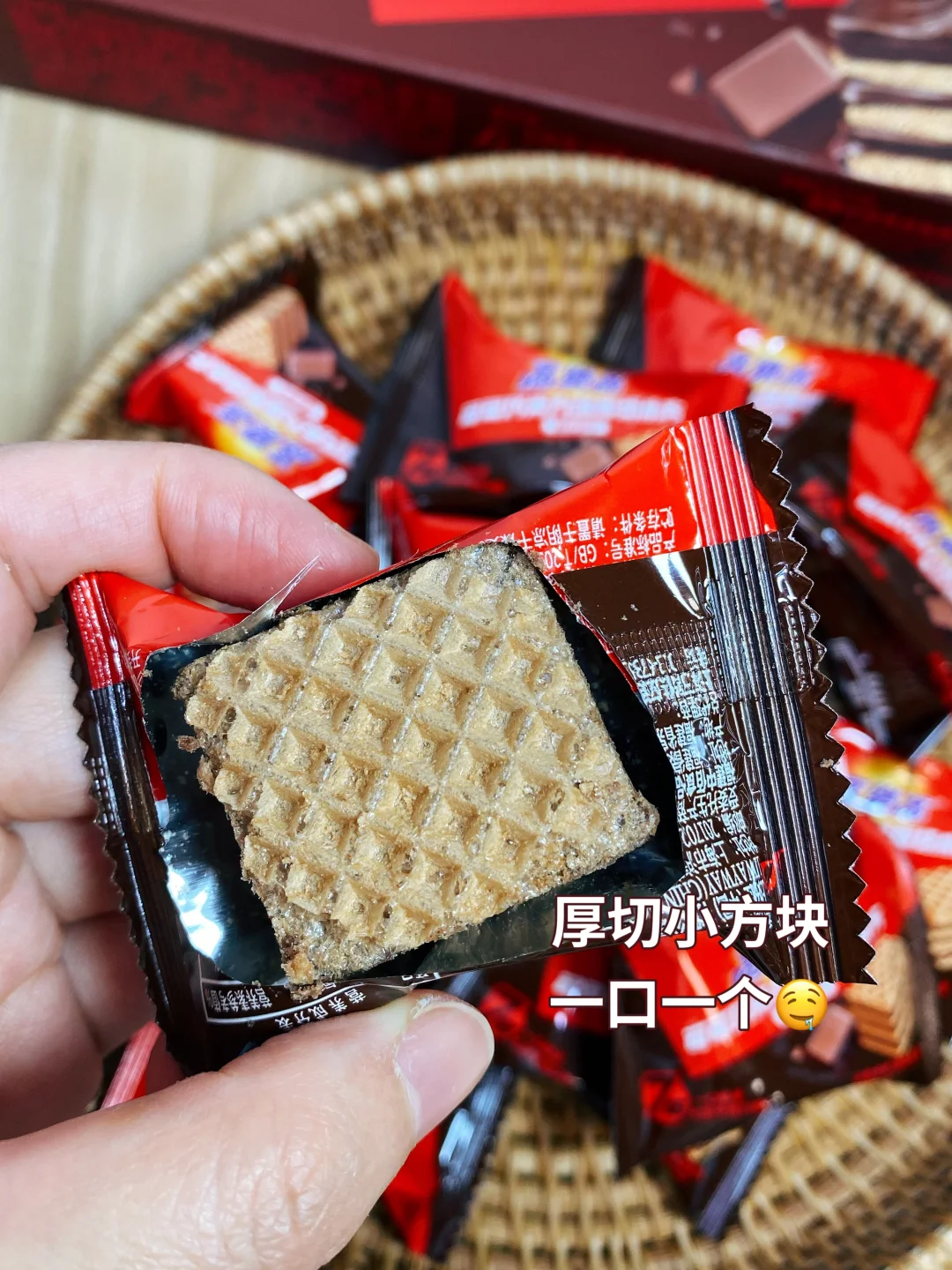 今天分享这款可可巧克力味厚切小方,简直是办公室、追剧时的完美小零食👍
