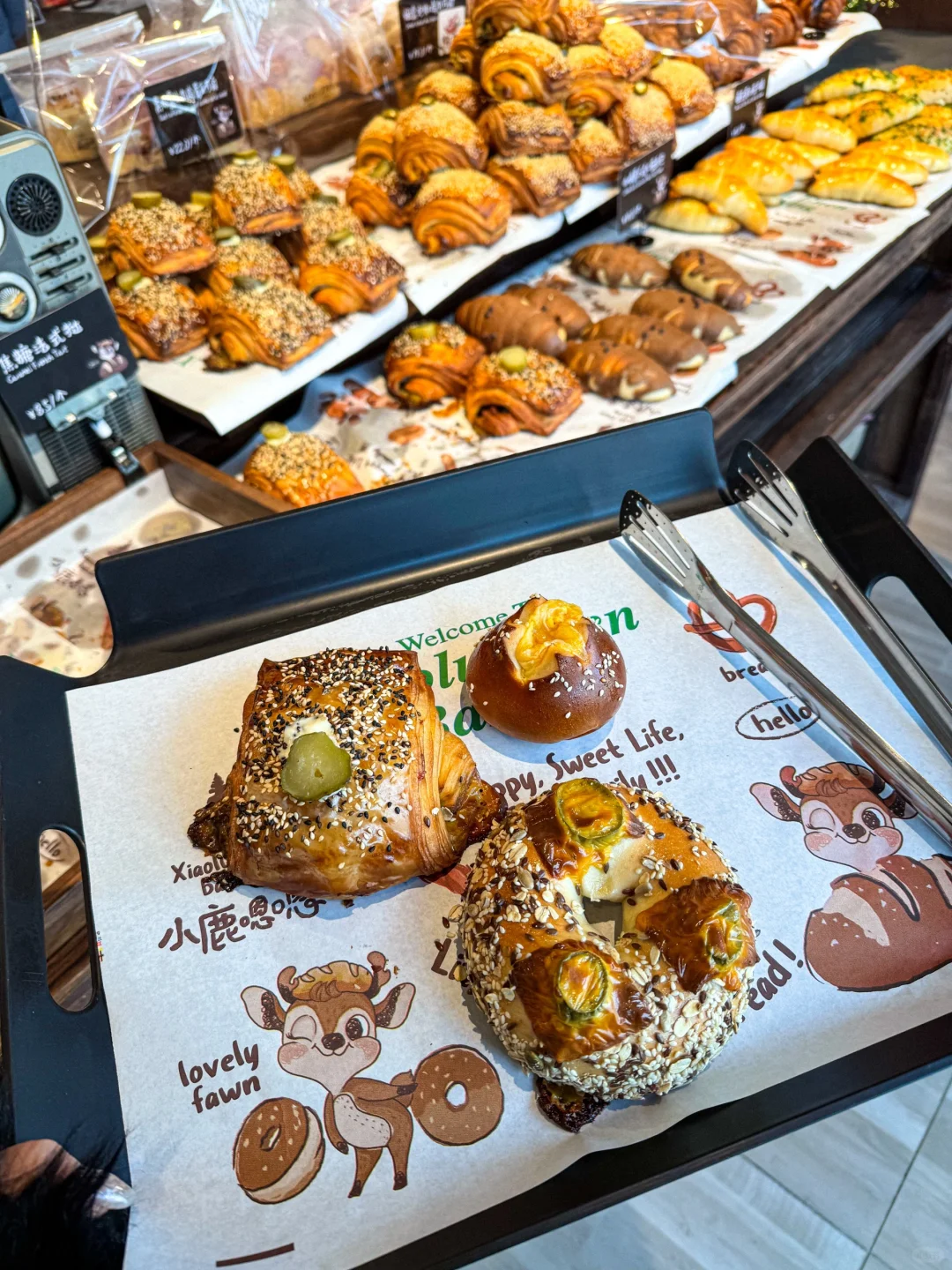 之前的鹿小姐蛋糕全新装修升级啦🫎摇身一变成了小鹿嗯嗯~🧈有点像保定版的【黄油与面包】 开放式展示台满满当当看着非常有食欲🥖面包新鲜出炉,种类十分丰富,可以自由选购🛒不过有点小担心卫生问题,希望能再优化一下 新推的可颂、贝果、碱水结系列🥯不仅颜值高口味更是一绝🥐黑松露牛肉酸黄瓜可颂🥒牛肉香和黄瓜的清爽完美融合,每次都是必选款🥨开心果乳酪碱水结,咬起来软乎乎,吃了真的会让人开心~ 店内的休息区拍照还挺出片的☕️可以跟小姐妹一起约个下午茶