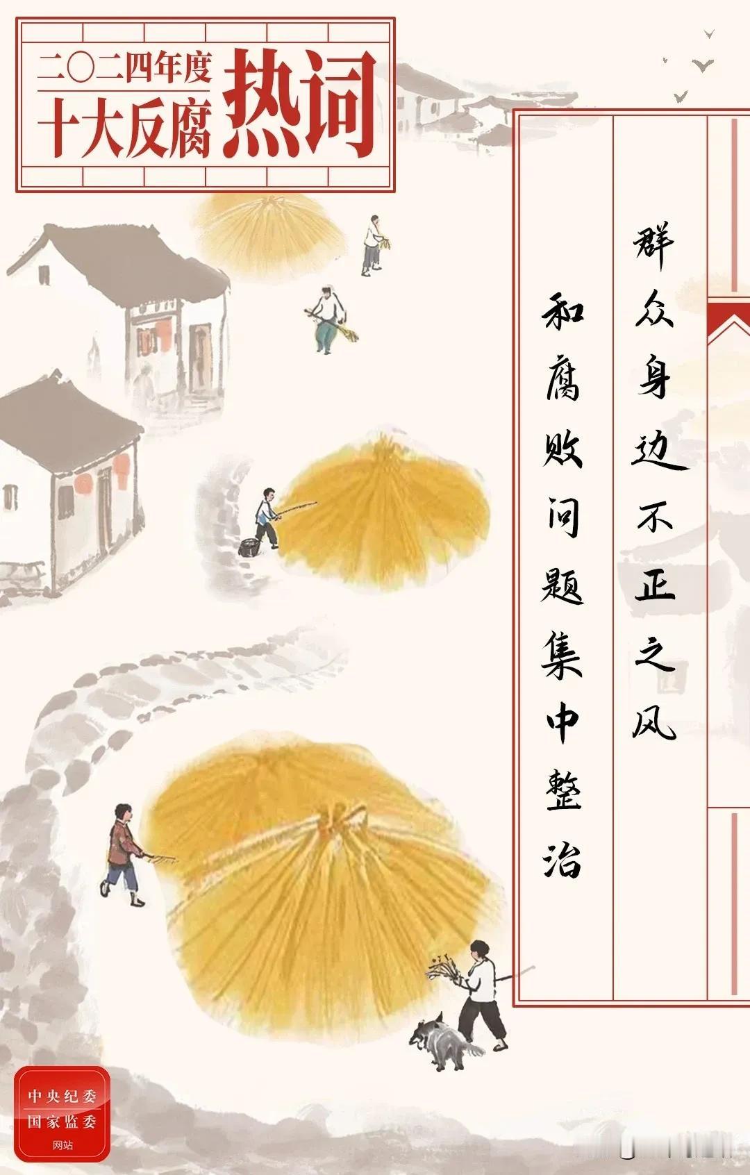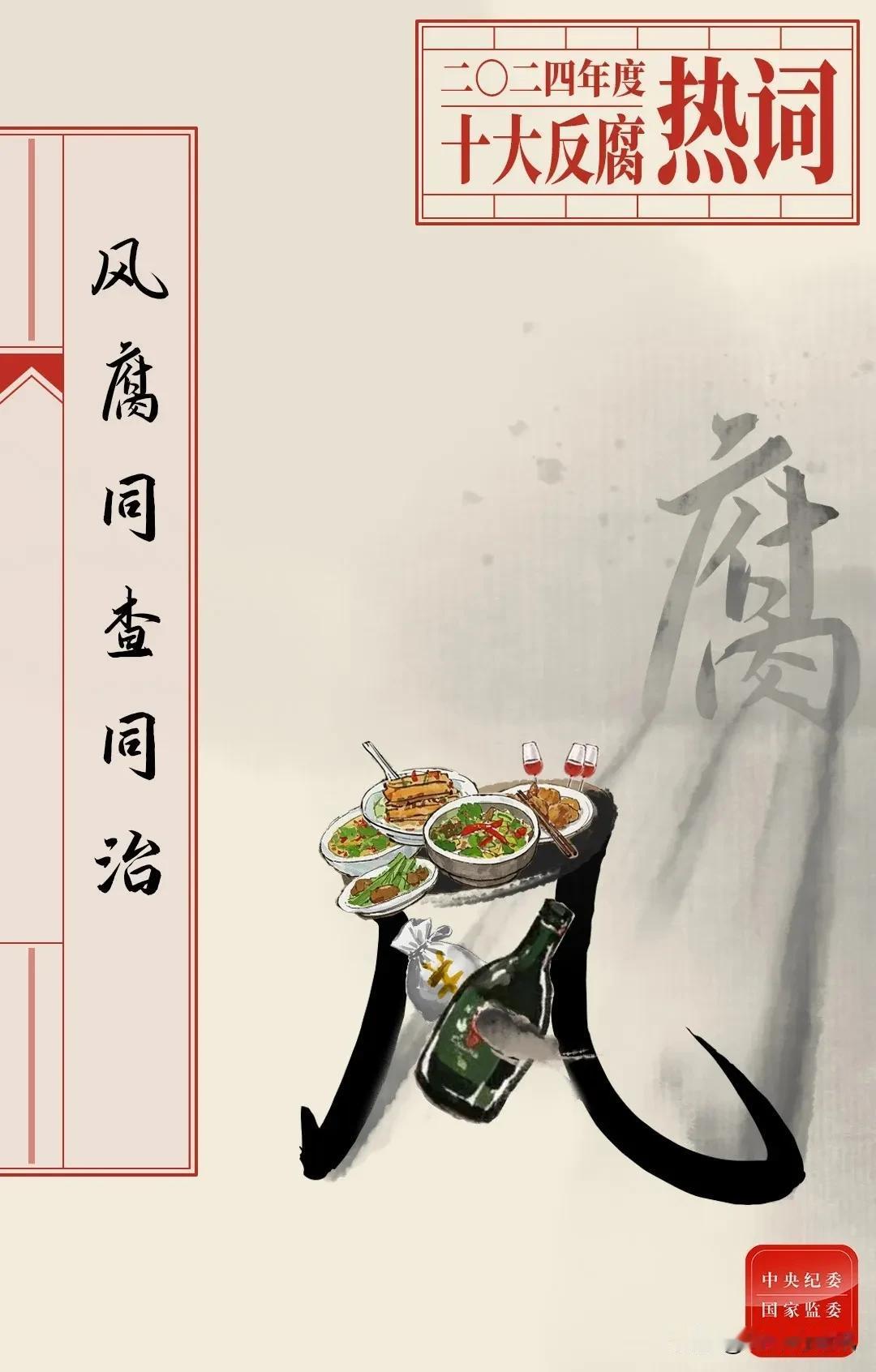 2024年度中央纪委监委推出十大反腐热词 这十大反腐热词分别是“自我革命”“党纪学习教育”“不能回头、不能松懈、不能慈悲”“准确运用‘四种形态’”“铲除腐败滋生的土壤和条件”“群众身边不正之风和腐败问题集中整治”“风腐同查同治”“为基层减负”“快递送礼”“对村巡察”。