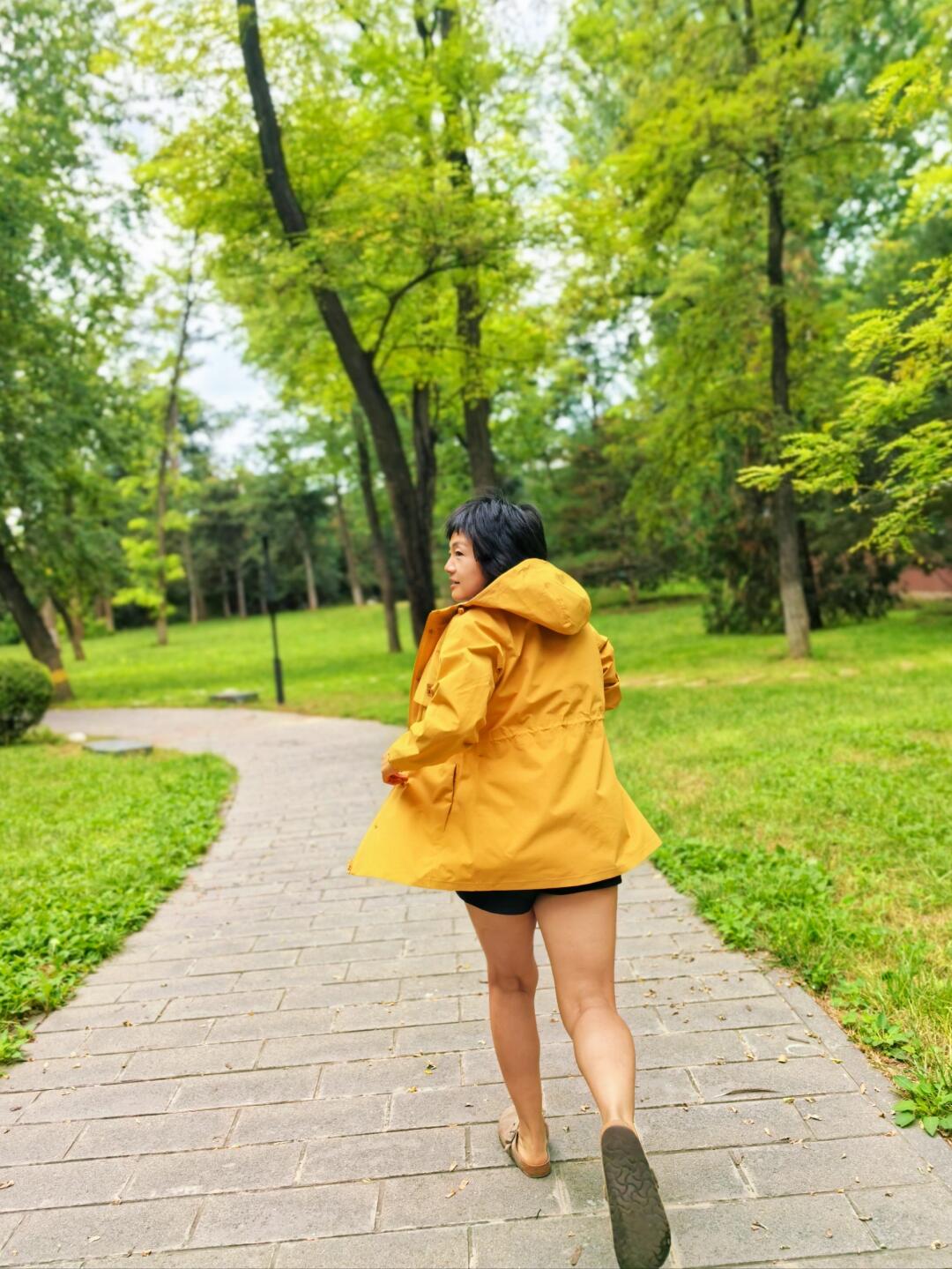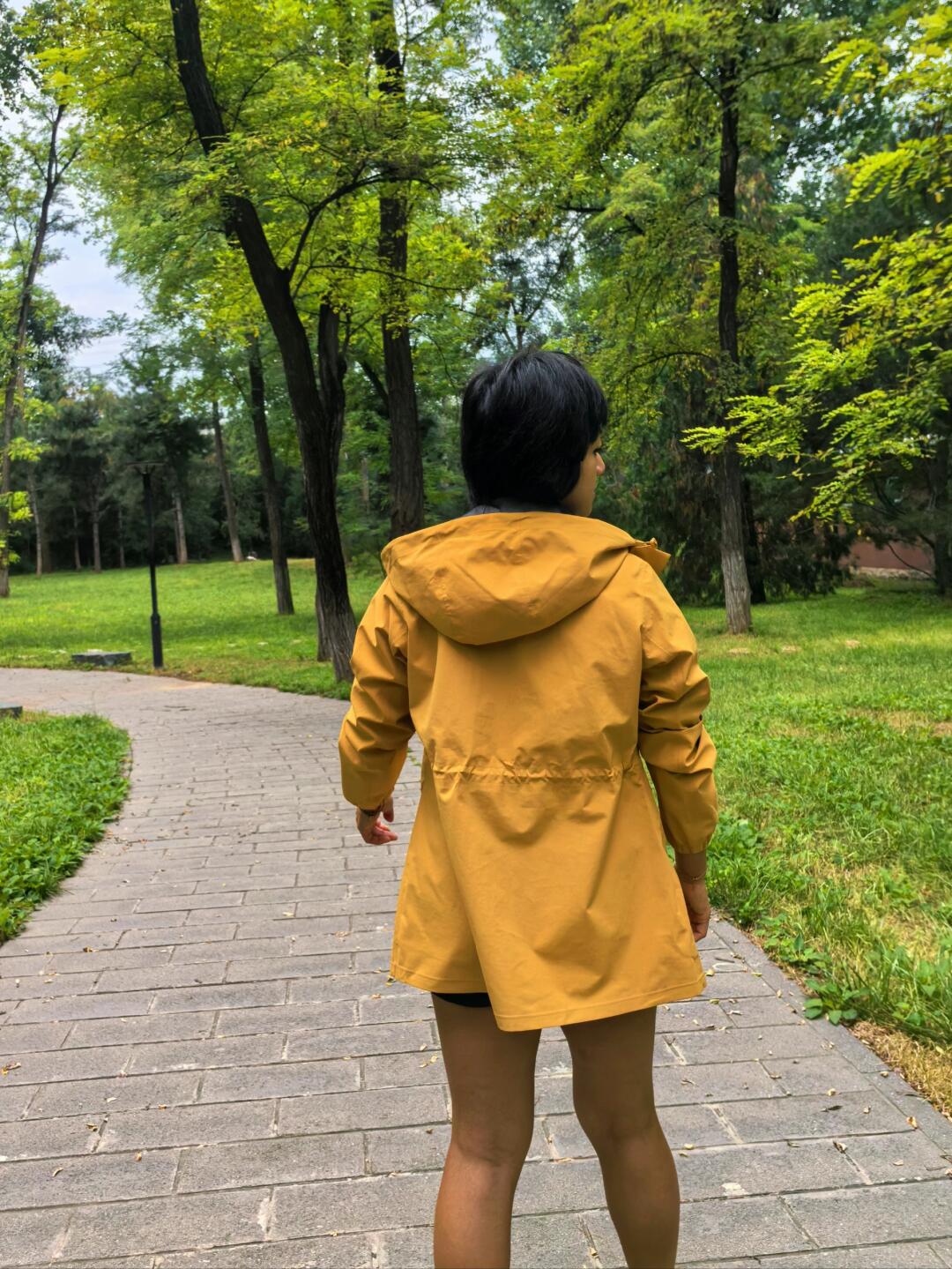 天冷加衣 挡风挡雨风衣配短裤 去山里玩儿正合适 去山里玩儿呀! 户外不破防~