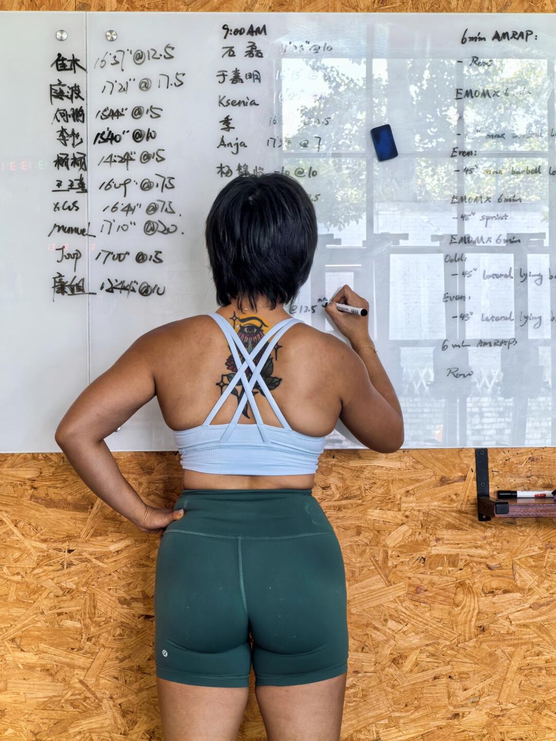 贴贴墙近 屁股收回去 肋骨收回去 脚绷紧 很累 但会变强 就像lululemon Wunder Train的训练服一样 给身体很好的支撑 舒适与力量的完美融合 每一次的训练 都是无限可能 写白板时最快乐 记录着自己的成长 记下了每一次的不放弃 即使颤抖也要坚持