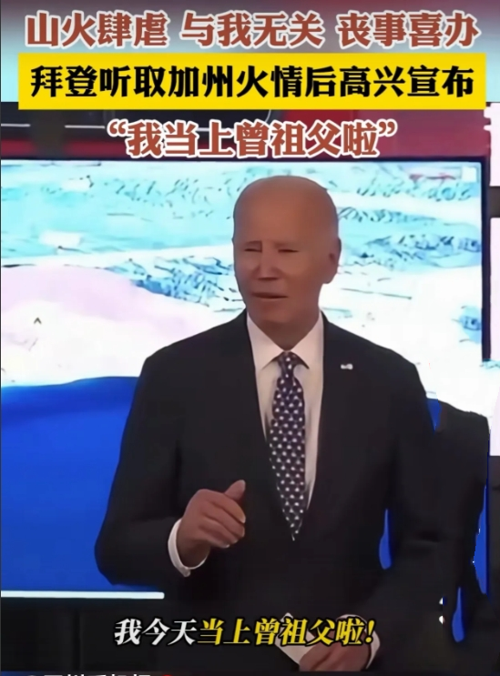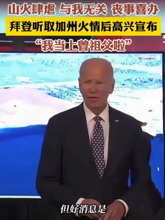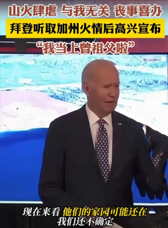 在白宫听取加州大火汇报后,拜登说,我听说他们的家园可能被烧毁了,现在看来他们的家园还在,不过我还不太确定。但好消息是,我今天当上曾祖父了……这时候美国应该是举国欢腾,为拜登的曾孙祝福。 #拜登
