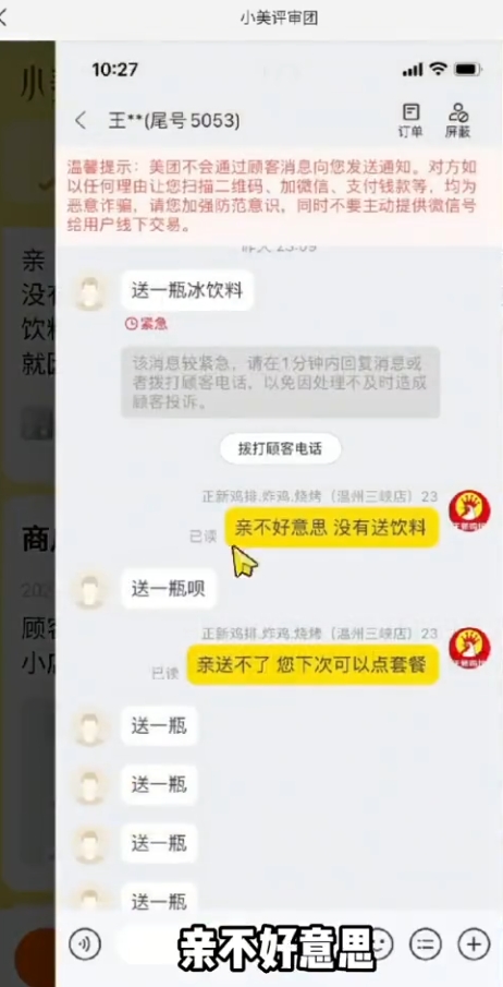 商家:不送饮料,怎么还威胁上了,现在的顾客是什么素质呀