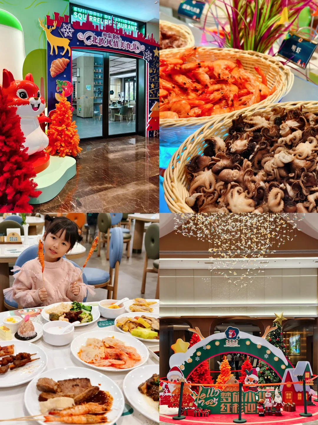 松鼠餐厅下楼就是,好方便!自助晚餐是北欧主题美食节,菜品丰富,出品也很👌🏻,大人小孩吃得好好好满足~