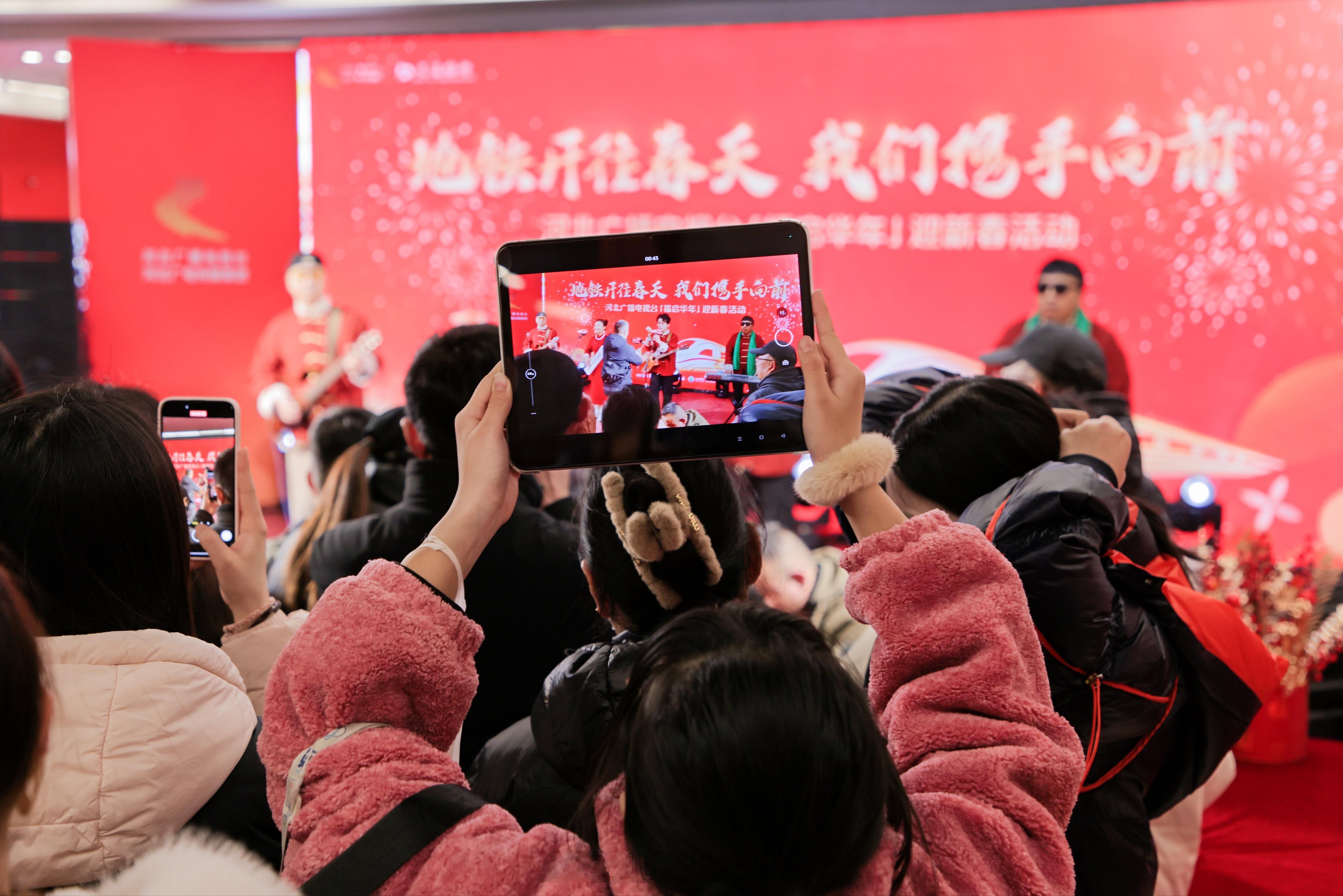 河北广播电视台「福启华年」迎新春主题空间,设置了台(集团)展示长廊、特色龙门、礼品区、拍照打卡区、幸运互动区、书法区、舞台区等区域。