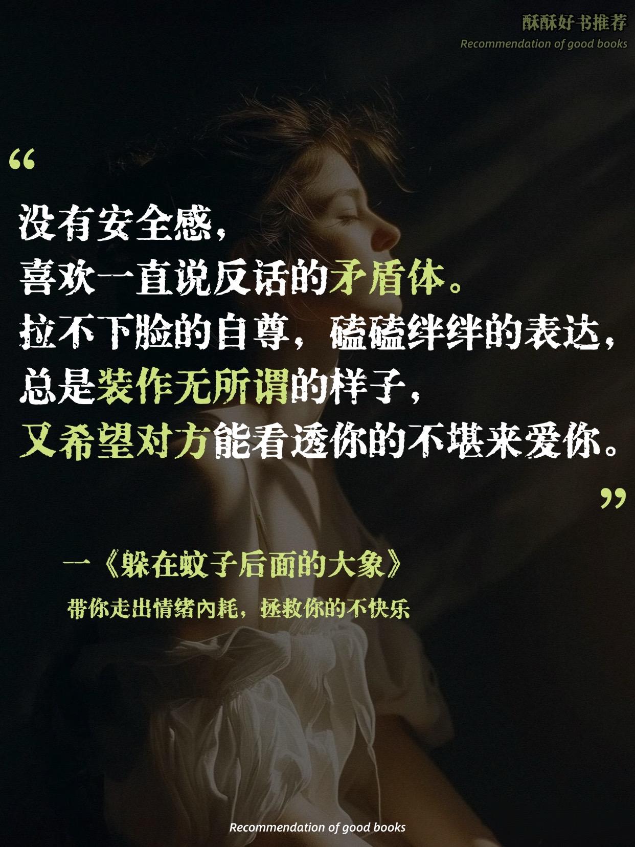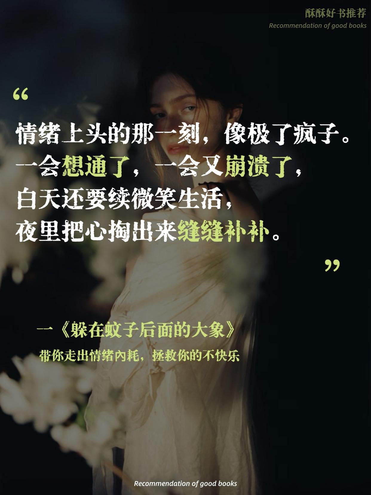 太治愈了!《躲在蚊子后面的大象》是一本充满力量与智慧的书籍,不愧是董宇辉老师推荐的心理疗愈书,强烈建议拧巴纠结、情绪不稳定的人读一读这本书。有时间自我内耗,不如花精力修补治愈自己。