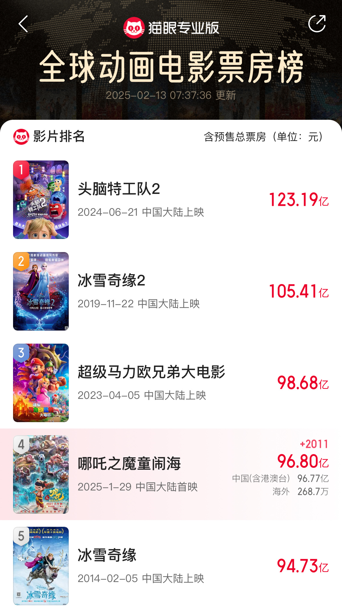 哪吒2全球动画票房TOP3 谁碰瓷谁还不好说嘞[笑哈哈]