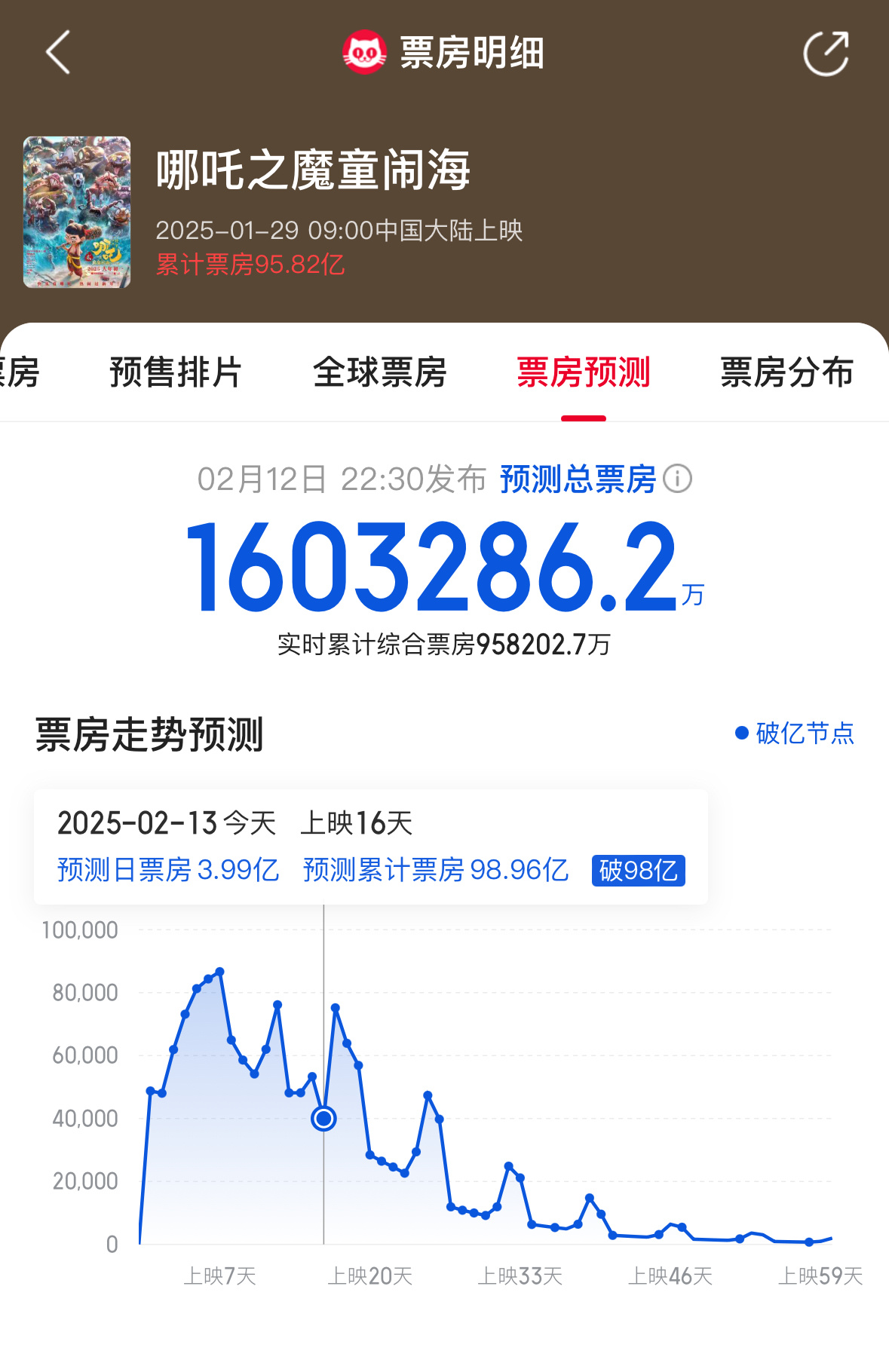 饺子 早知道十亿十亿画了 哪吒2最新票房预测:灯塔153亿,猫眼160亿。动画前