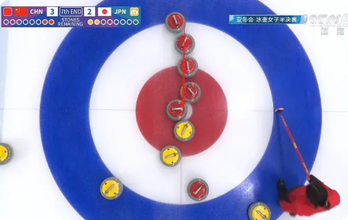 亚冬会上,在中国女子冰壶半决赛对阵日本队的比赛进行到第7局中,难得看到红区内一窜