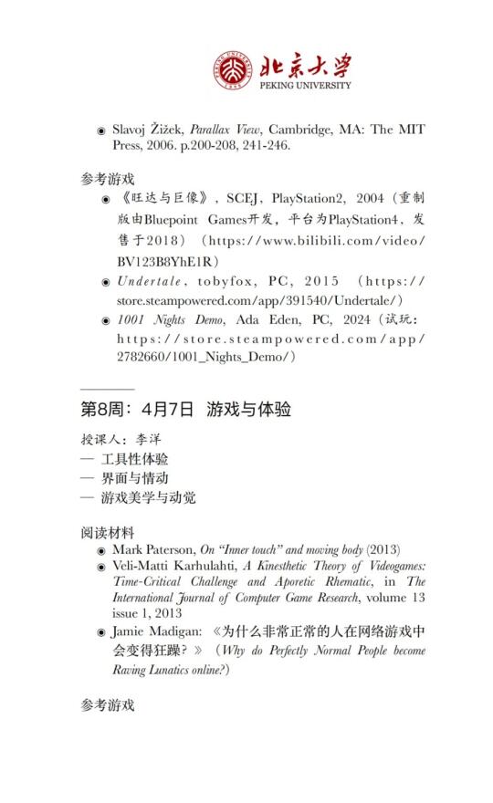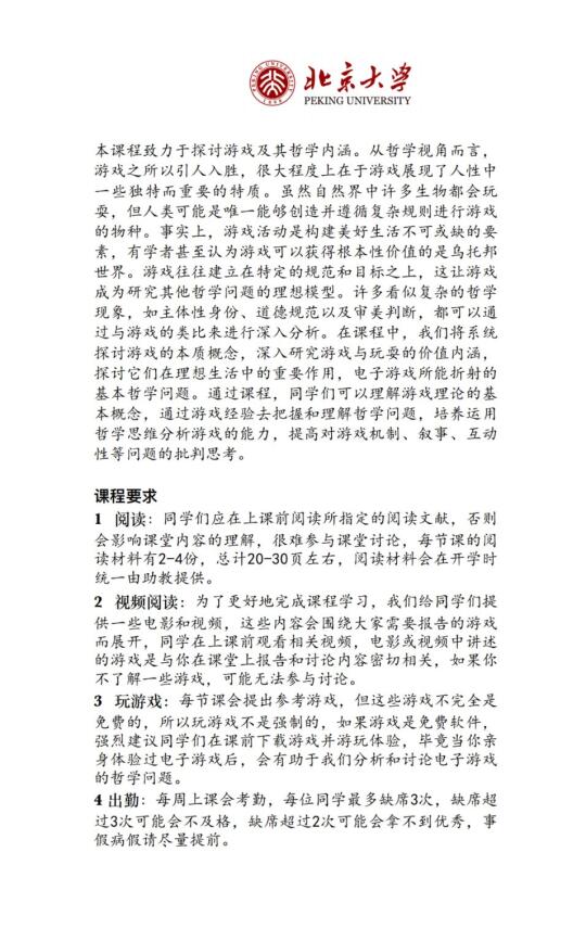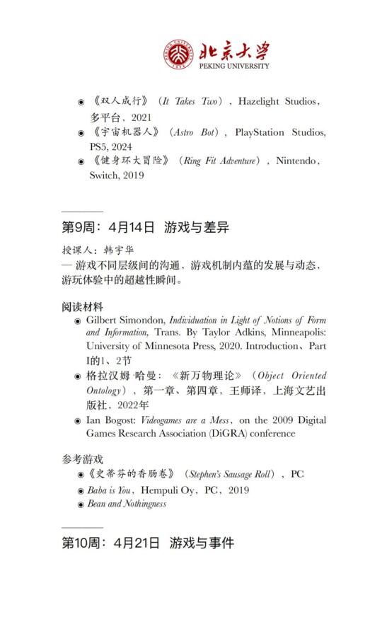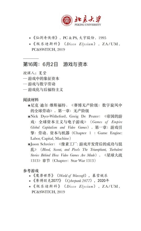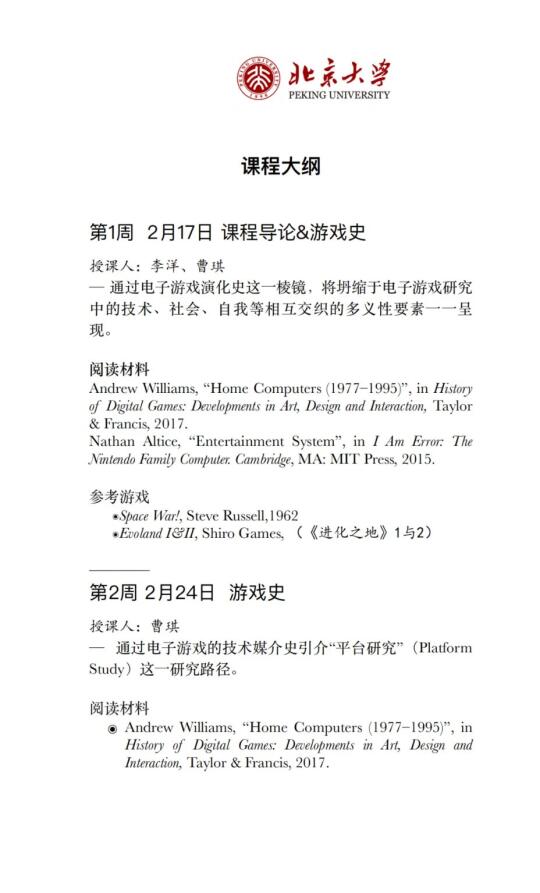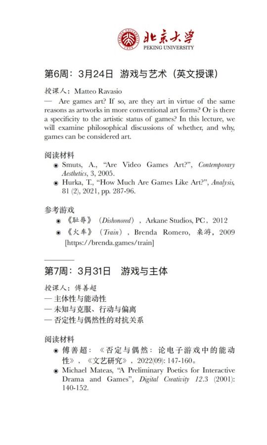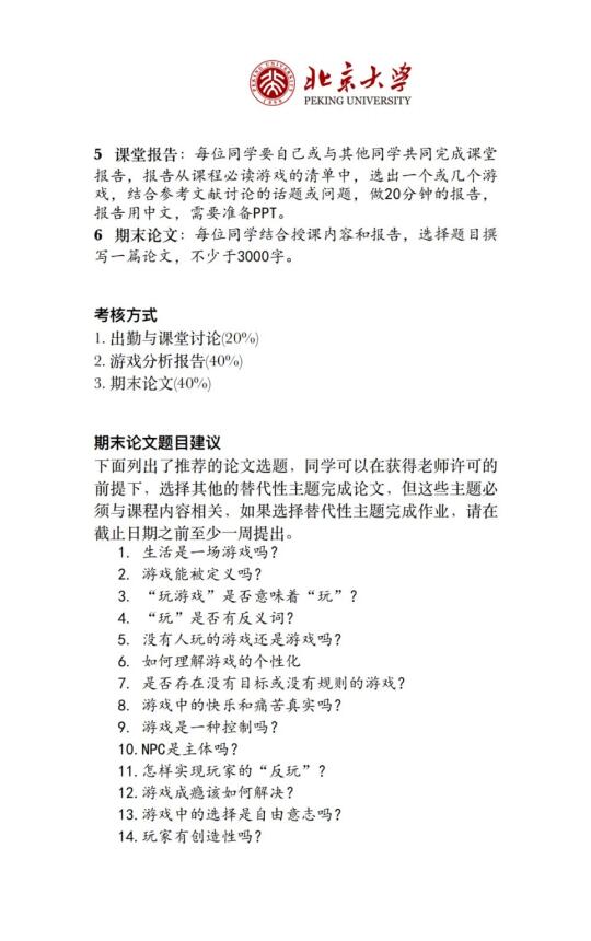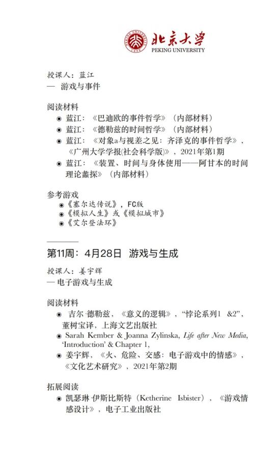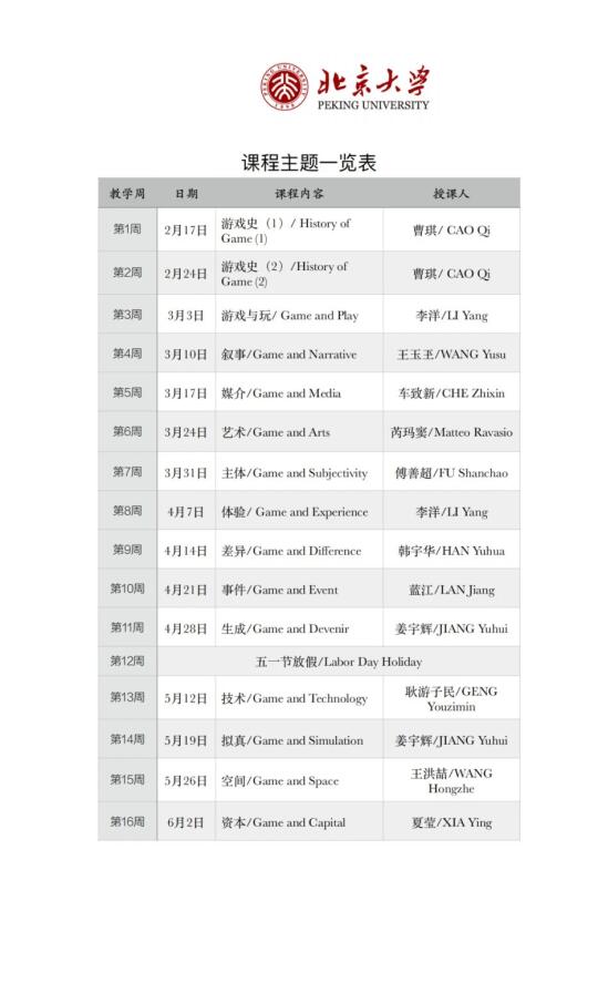 诚意满满的一门课,每节课都请了不同的授课老师,列出课程主题、阅读材料、参考游戏,看到推送的第一眼,我想的居然是:要花多少工夫才能把这门跨学校、跨学科的课组织起来![自拍R][自拍R]