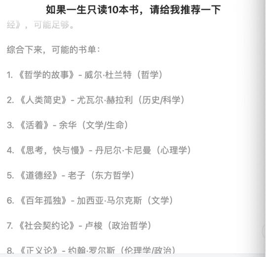 今天让DeepSeek推荐10本书,