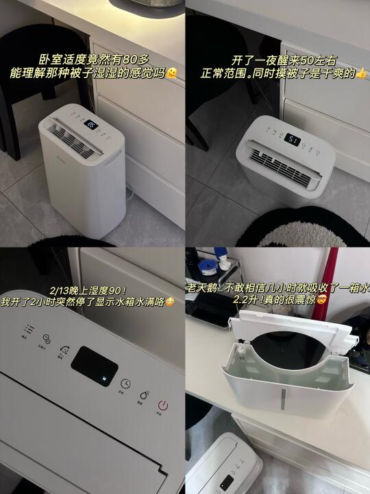 广东的回南天或许只有广东人和在广东居住的人才知道有多恐怖。 豪不夸张的说,我们家当初刚买的电视还没看过一次就主板报废拉回厂换主板,原因就是我们用的岩板背景墙,背景墙的水都进电视了。当时很生气,为什么不是换新机。? - 后来就开始重视回南天,因为真的太恐怖啦!去年买过一个台式的很小的除湿机效果不咋样,这次是事先做好功课买的伊岛除湿机,真的很有效!!而且好喜欢它极简的造型。颜值可高。 - 这两天卧室湿度80-90,那个难受…被子也冰冷冷湿哒哒,用了一晚除湿机湿度恢复到51正常范围,被子也干干爽爽 - 邻居在应对回南天是开空调,但是我觉得费电,这个除湿机哪里需要它就搬哪里去,而且可以对着衣服和床被吹,很方便。适合的场景非常多。为了家庭的健康家里必不可少。 最后建议广东装修不要瓷砖上墙,不要岩板背电视景墙啊🙈