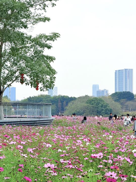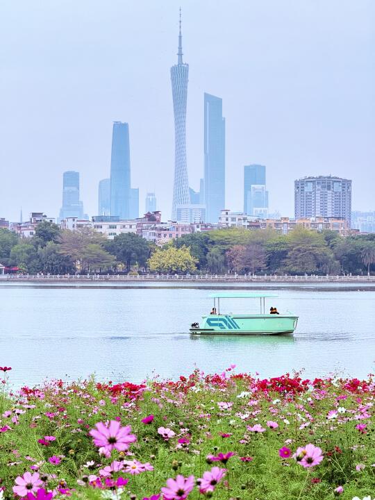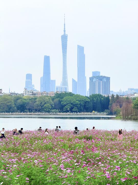 从北门进,过桥后往右手边➡️步行1.1公里17分钟,抵达【海珠湖·花畔塔影】一整片格桑花花海🌼打卡小蛮腰同框机位