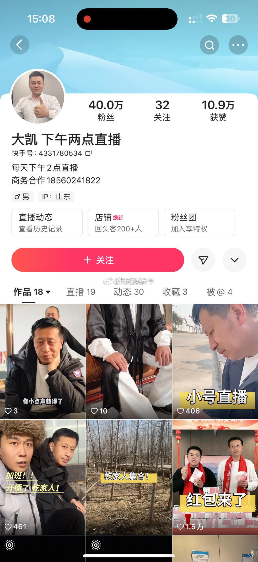 快手主播 大凯下午两点直播 博取对立炒作流量售卖保健品!