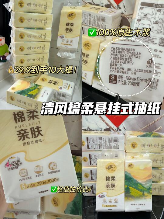 get 同款挂抽,单提低至2.99/提 。29.9到手10大提清风绵柔悬挂式抽纸,主打超值性价比~[耶R]质量嘎嘎好,真的可以闭眼囤起来~