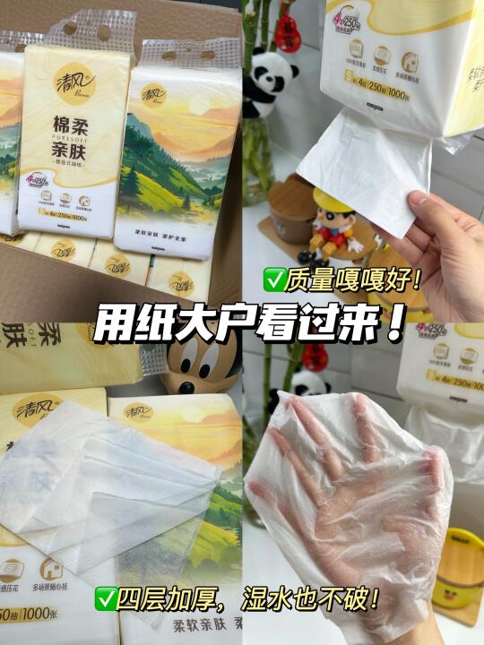 [点赞R]这款抽纸是4层加厚的,湿水也不会破,平时吃完早餐可以给孩子擦嘴擦脸,亲肤柔软,真的很实用[萌萌哒R]它还是100%原生木浆,不含荧光物质,给孩子用更安心。