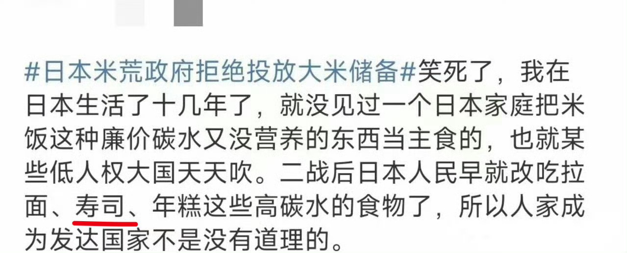 我记得去年日本闹米荒的时候,二鬼子说了,小日子一点也不慌,大米人家早就不吃了,问题不大[笑哈哈][笑哈哈][笑哈哈]