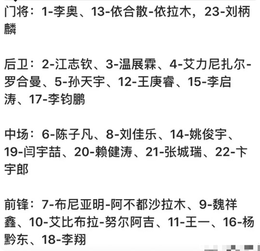 U17国青亚洲杯集训名单出炉,对比预选赛时的名单,有几点变化! 门将位置有变化,预选赛名单中的门将:李奥、依合散-依拉木均出现在集训名单中,刘柄麟被星辉的魏德梁取代。 后卫预选赛名单中的后卫:江志钦、温展霖、艾力尼扎尔-罗合曼、孙天宇、王庚睿、李启涛、李钧鹏,大部分也都在集训名单中,仅李钧鹏未出现在集训名单。也可以理解,李均鹏本来就是09的,属于跳级。张洪福看来被彻底放弃,依然没有进名单。 中场位置有变化,陈子凡、刘佳乐、姚俊宇、闫宇喆、卞宇郎继续入选,少了赖健涛和张城瑞。不过张城瑞换到前锋里去了,真正少的是赖健涛。替换上的是陈子凡和姜轶祥。分别来自江苏省江宁足球训练基地和塞尔维亚格拉菲卡足球俱乐部,姜轶祥还是有点名气,凯哥去塞尔维亚好像也看过他,也算是补强了。 前锋除了布尼亚明-阿不都沙拉木、魏祥鑫、艾比布拉-努尔阿吉、王一、杨黔东、李翔外,补充了上海根宝足球俱乐部的彭子鸣,浙江职业足球俱乐部的魏子健,对这两位球员不是最了解,估计也是补强了。 总体来看,预选赛的主力没有发生变化,实力还是靠得住,加上人员补强,相信可以在这个小组突围,入围u17世界杯。
