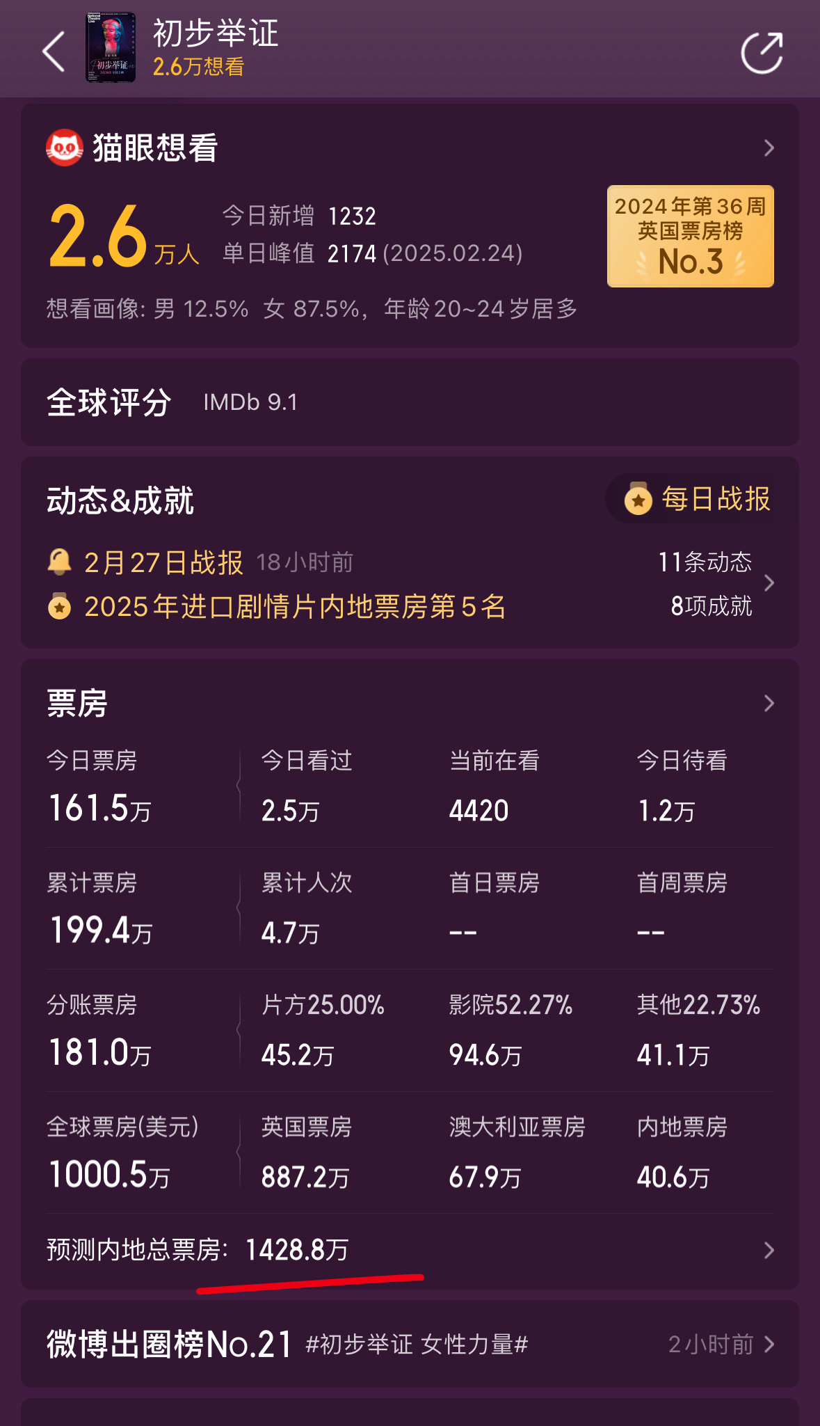 豆瓣9.6分神作,女性主义集大成,上映首日才100万票房?最终预测才1400多万,媎妹们别光叫好,买买票啊。