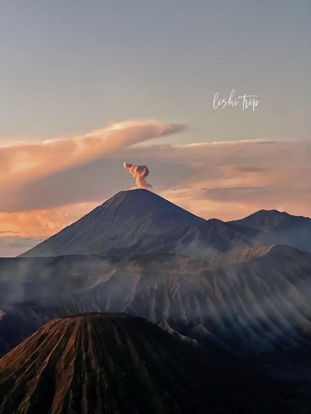 全网神图就是Bromo火山 亲自感受过才知道 凌晨四点才能开爬 早点去的话,路上不会堵车。 租大衣10k就可以了 记得带三脚架,能拍到星空和火山。 豪赌一把 日出 、云海 、星空一起见证。 日出真真真太美了!火烧云海的感觉。 日出半个小时,Bromo会带点粉色。 彻底天亮,就能很清晰看完全貌。