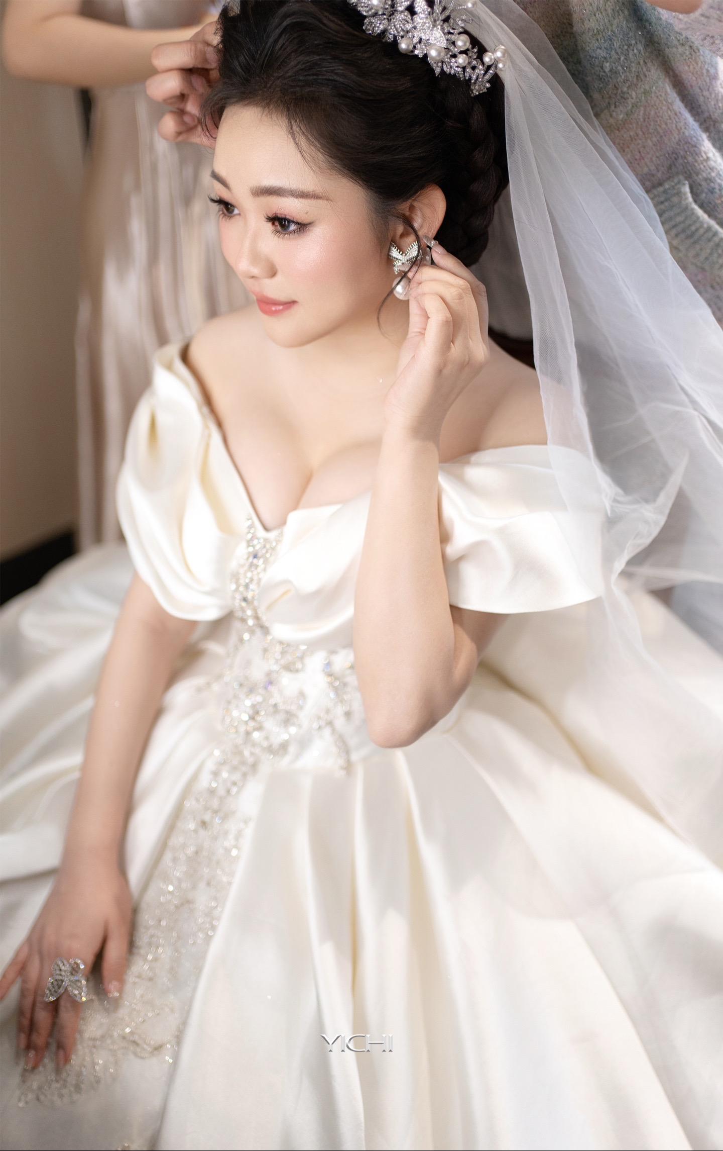 洁白的婚纱手捧着鲜花 新娘跟妆造型 🖤💚