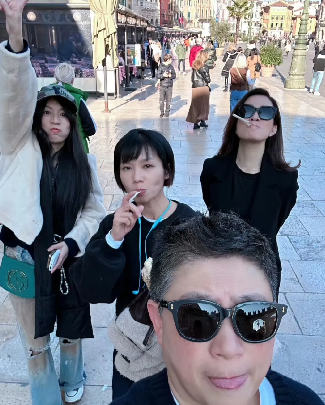 佘诗曼在米兰,吃到了好吃的冰淇淋,一脸幸福开心的像个孩子,50岁的她可真年轻!