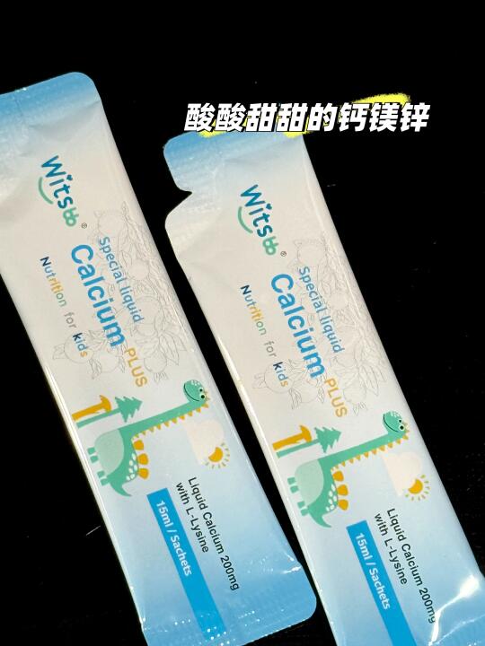[打卡R]钙镁锌: 6个月~12岁都可以吃。 含有9大营养素,非常齐全。 酸酸甜甜的口感,宝宝很爱吃。 我们只有饺子当天奶量不够的时候当零食吃[斜眼R] 一条条的包装方便携带。
