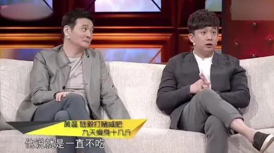 一次,黄磊和陆毅在剧组决定打赌减肥,接下来6天内只能喝水。因此,黄磊被饿的前胸贴后背,熬到第七天,陆毅一脸开心的对黄磊说:“黄老师,可以吃东西噜。”随后从手里掏出了一颗瓜子。