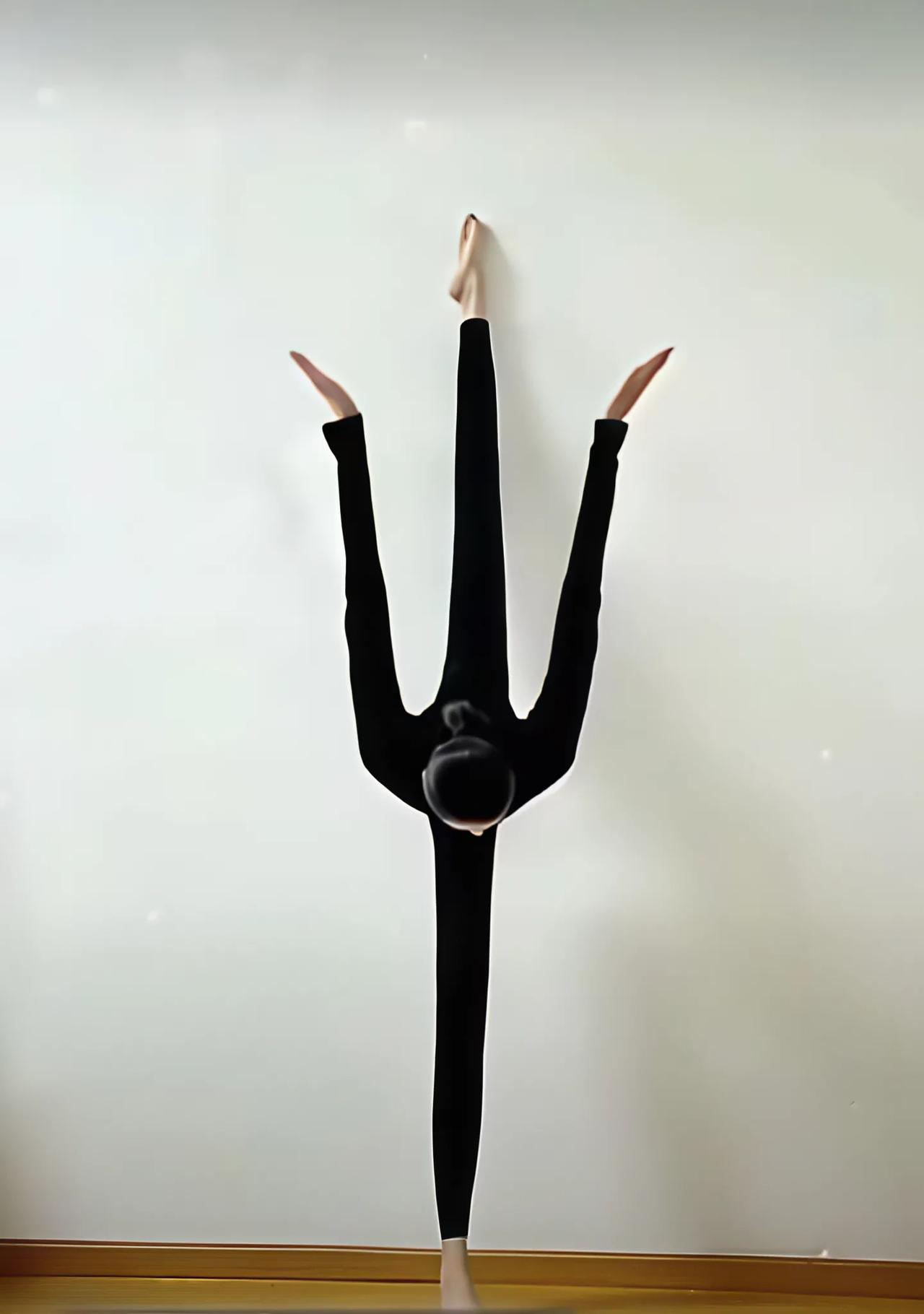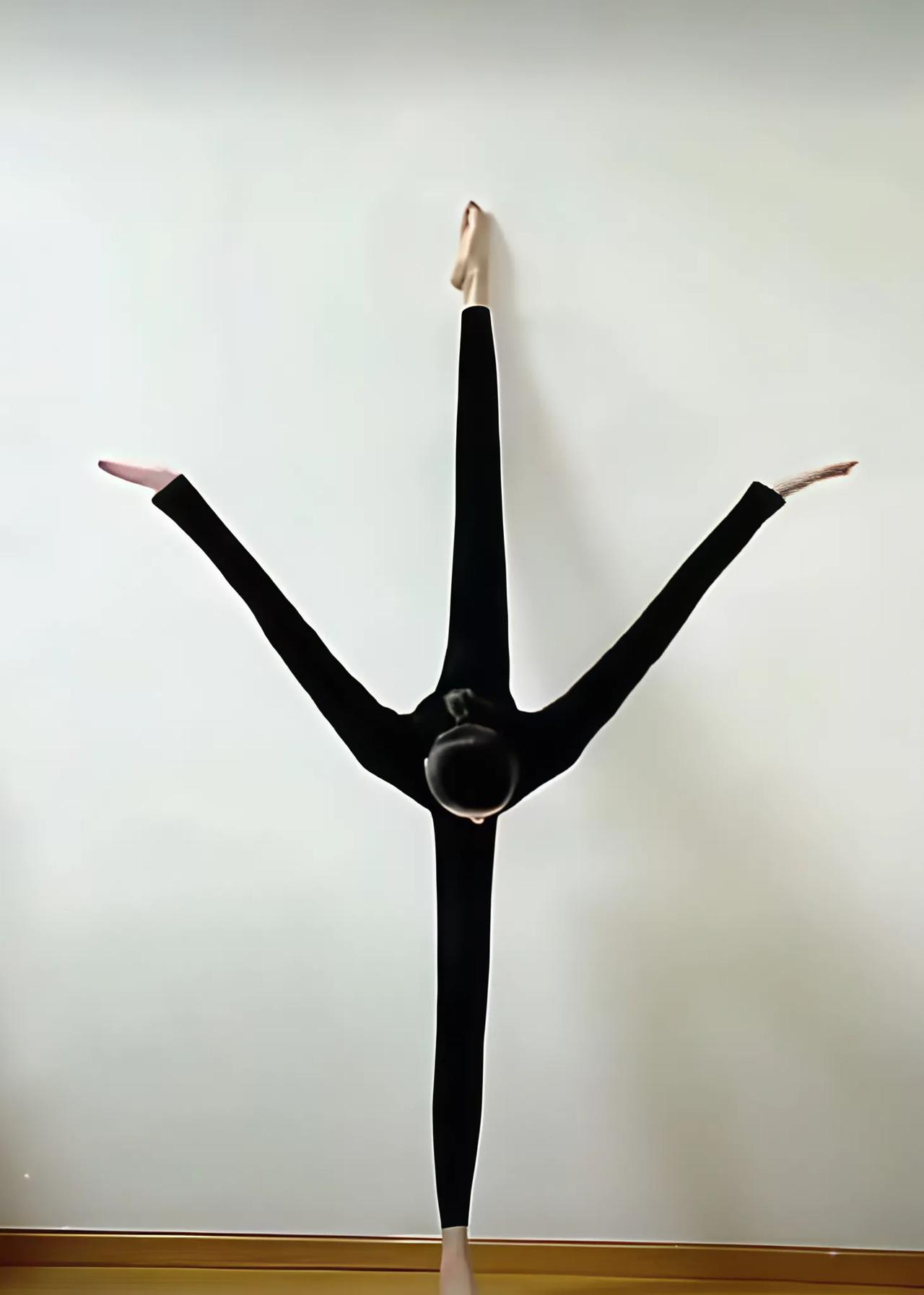人体塑造妙难寻, 突破极限心自钦。 绝伦妙美一字马, 姿态翩跹如飞禽。生命如炫之