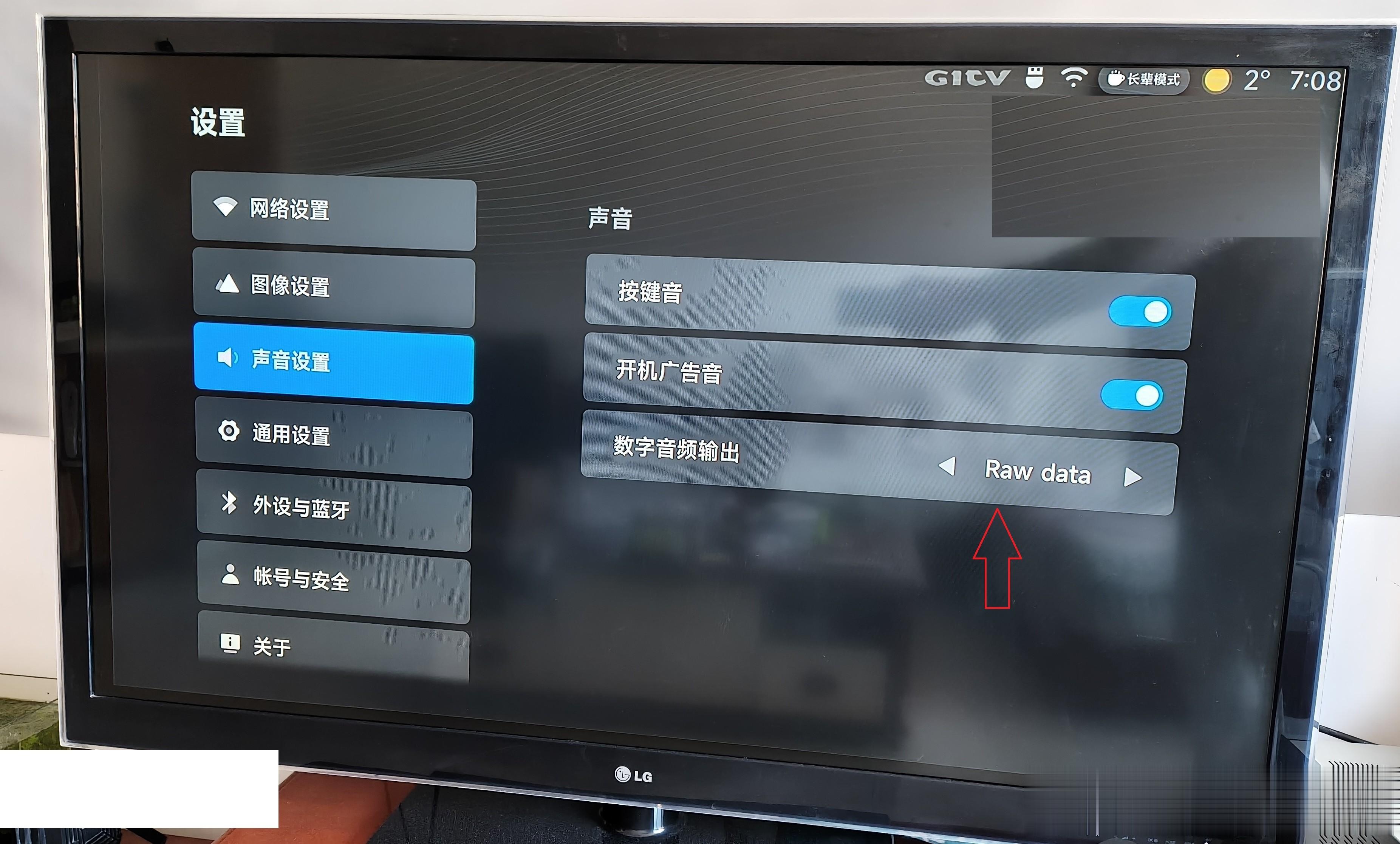 网络机顶盒里的音频设置成RAW data输出(就是源码输出):