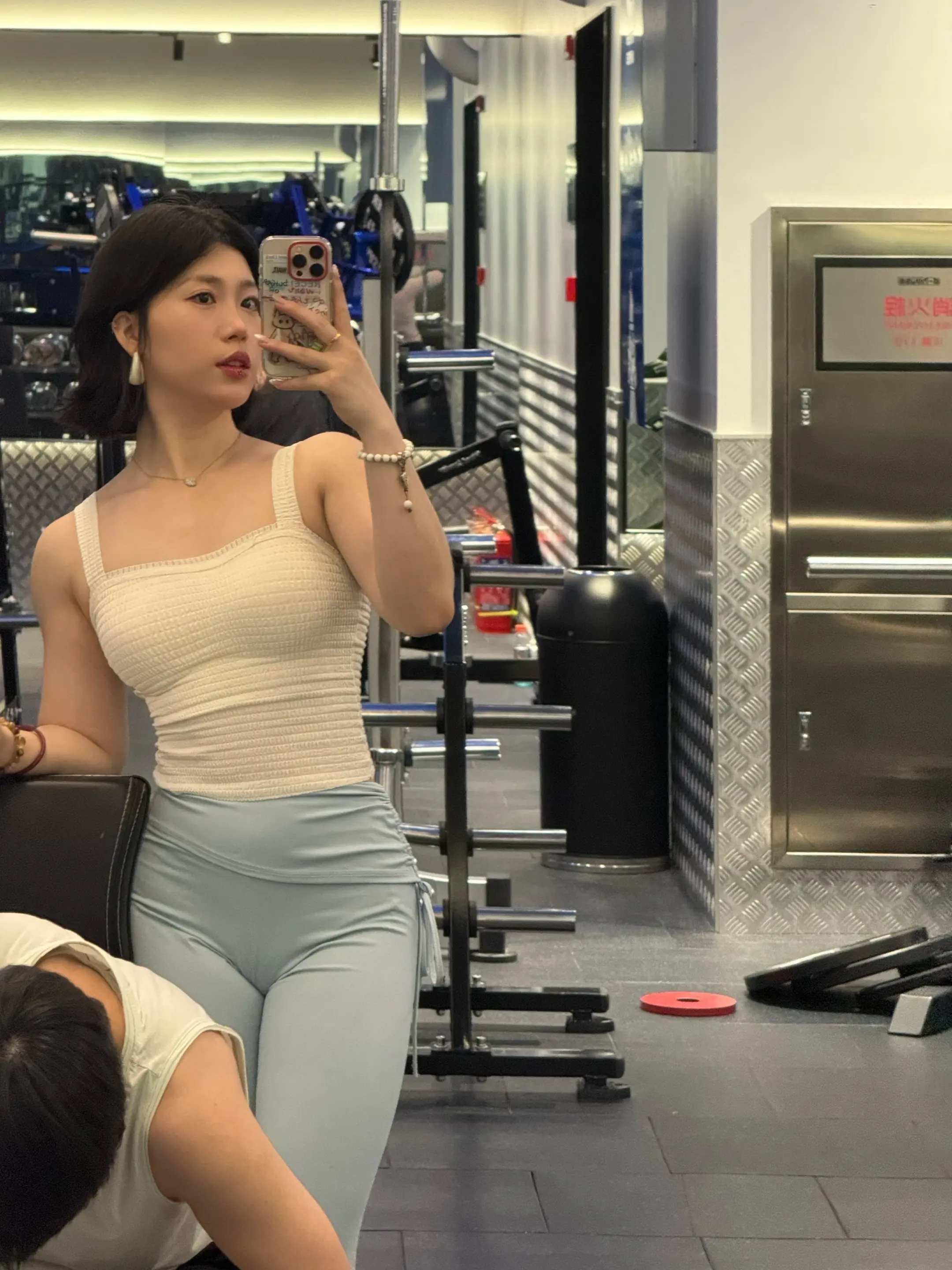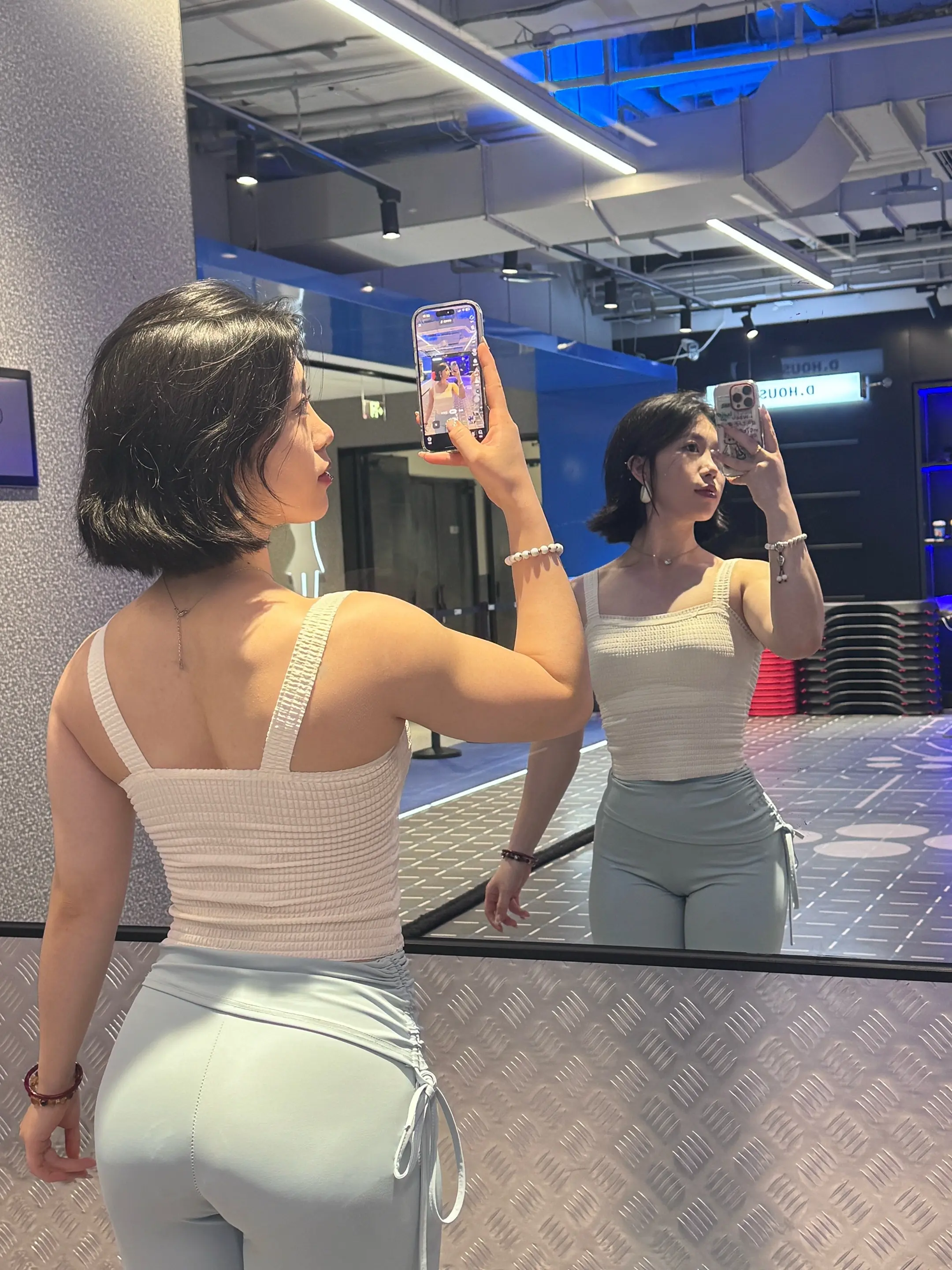 腰臀比 对镜拍 腰臀比 健身女孩多巴胺运动日常