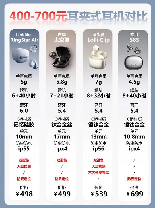 ②南卡Clip Pro:单耳仅5.1g,轻到没存在感,适合小耳~
