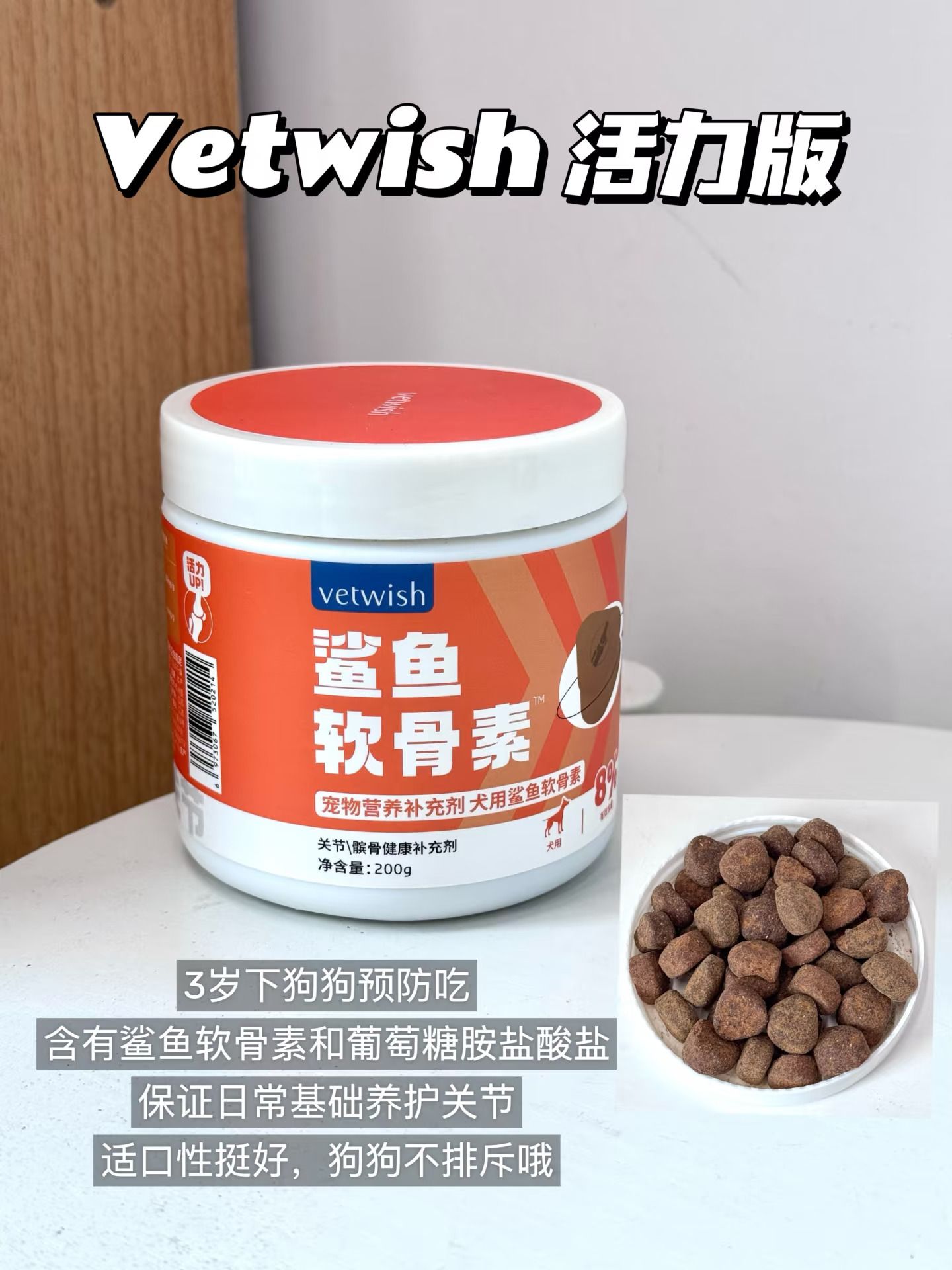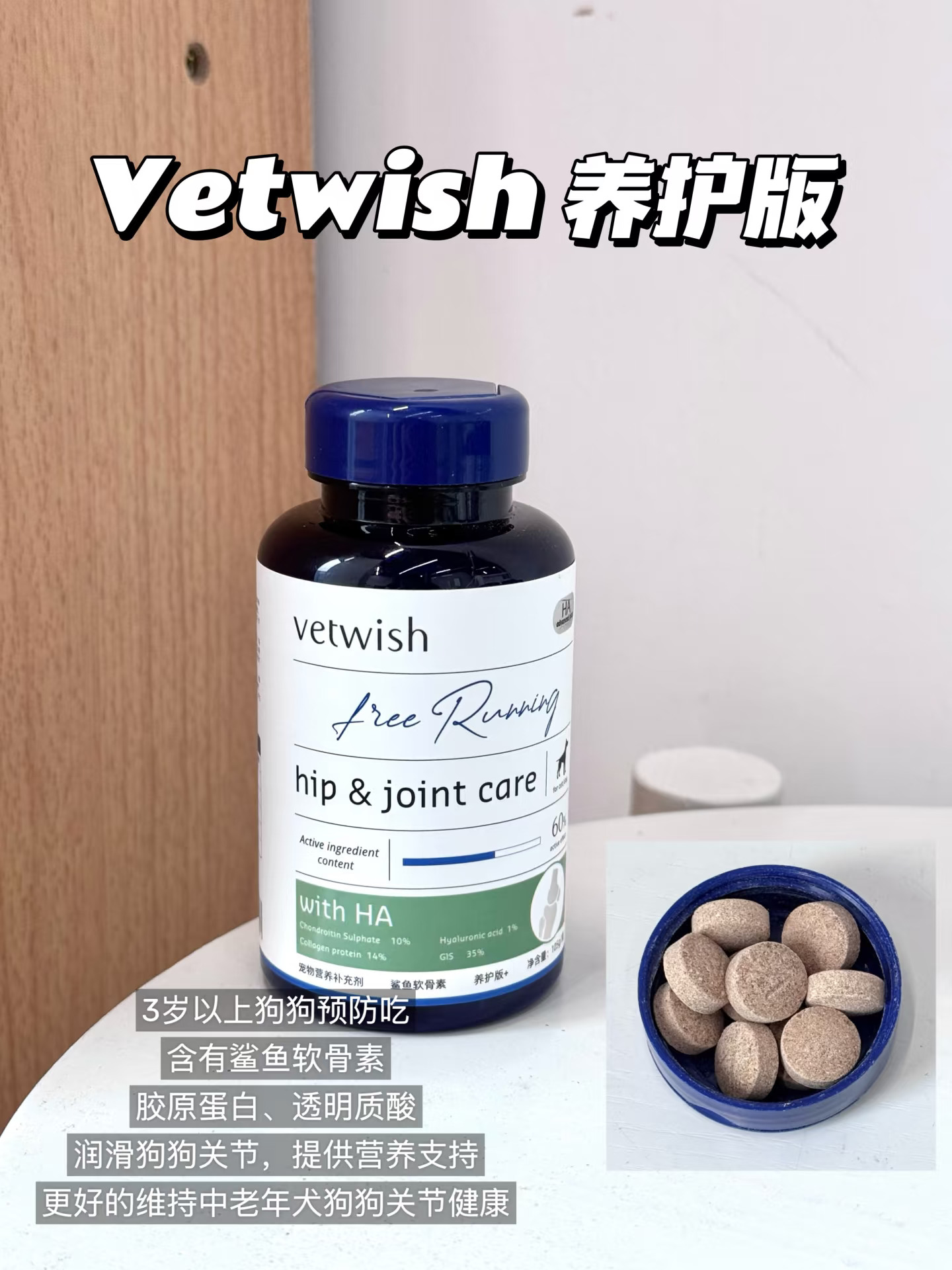 🟩Vetwish 养护版:3岁上狗狗预防吃,含有鲨鱼软骨素和透明质酸钠,可以润滑狗狗关节,更好的呵护中老年犬关节健康