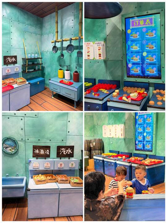 有海洋球区、攀爬区、蹦床游戏、汉堡厨房、木粒沙池区~
