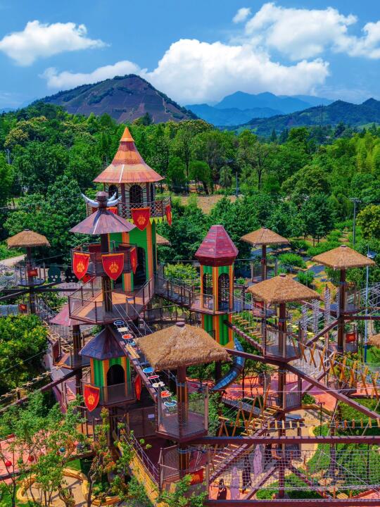 整个乐园zui高的88m高塔,可先体验蹦极or高空秋千,再坐船漂流而下~