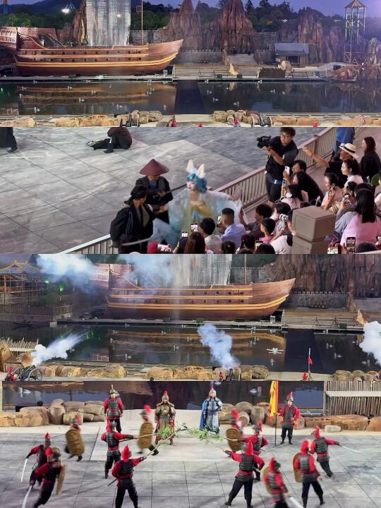 临水看台,沉浸式体验大型爆破现场,在炮火、爆破中感受战火纷飞,还有从头顶飞过的士兵,实景演绎太震撼