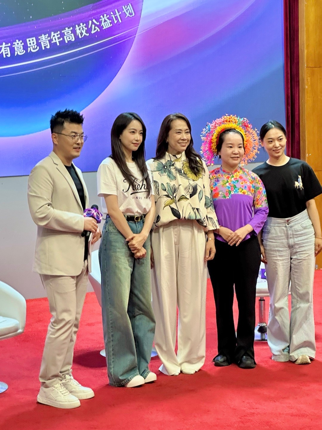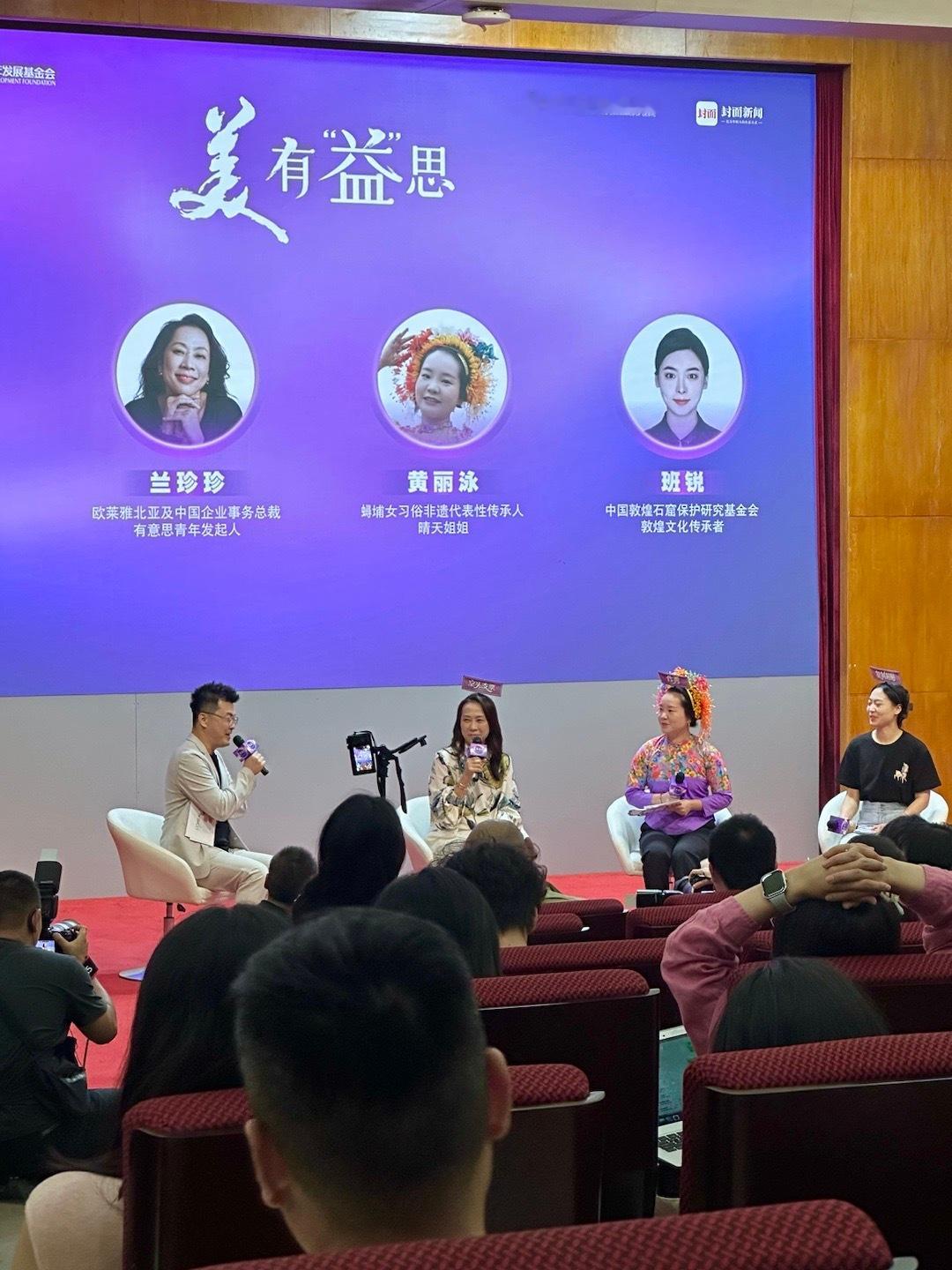 开场就听到了欧莱雅北亚及中国公共事务总裁兰珍珍、蟳埔女习俗非遗传承人晴天姐姐簪花黄丽泳和敦煌文化传承者班锐!以幽默梗的游戏方式来谈论如何更有意思的“做公益”开启话题~