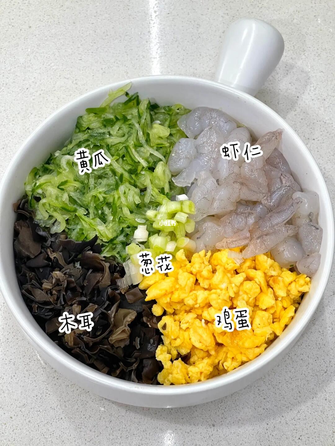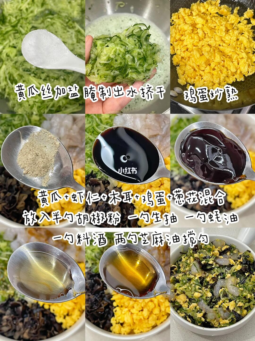 推荐一个好吃的饺子馅做法,真的特别鲜,适合全家老小. ✅准备食材:黄瓜2根?鸡蛋3个、木耳适量、虾仁120克、葱花适量. ✅制作方法: 🔹黄瓜切丝,加盐腌制出水挤干水分. 🔹鸡蛋炒熟没用,炒的干一些更香. 🔹木耳泡发好切碎,虾仁切段. 🔹所有食材混合,加半勺胡椒粉、一勺生抽、一勺蚝油、一勺料酒、两勺芝麻油顺时针搅拌均匀.